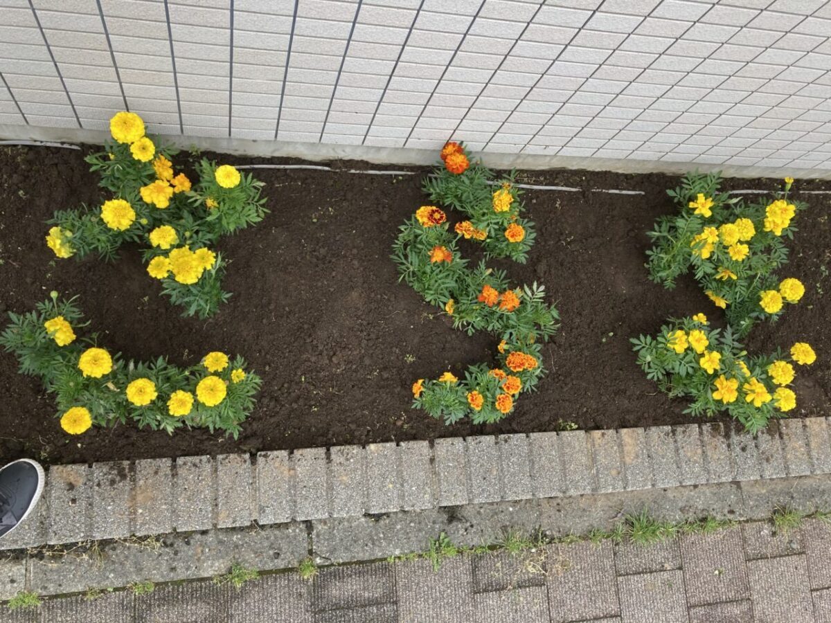 「さらさ」と「きらきら」の間には?の形にお花を植えています☆彡