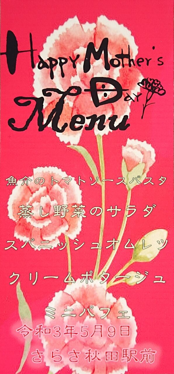 こんにちは(*^^)vさらさ秋田駅前の母の日をお届けいたします(^_-)-☆