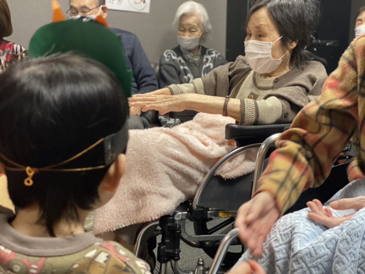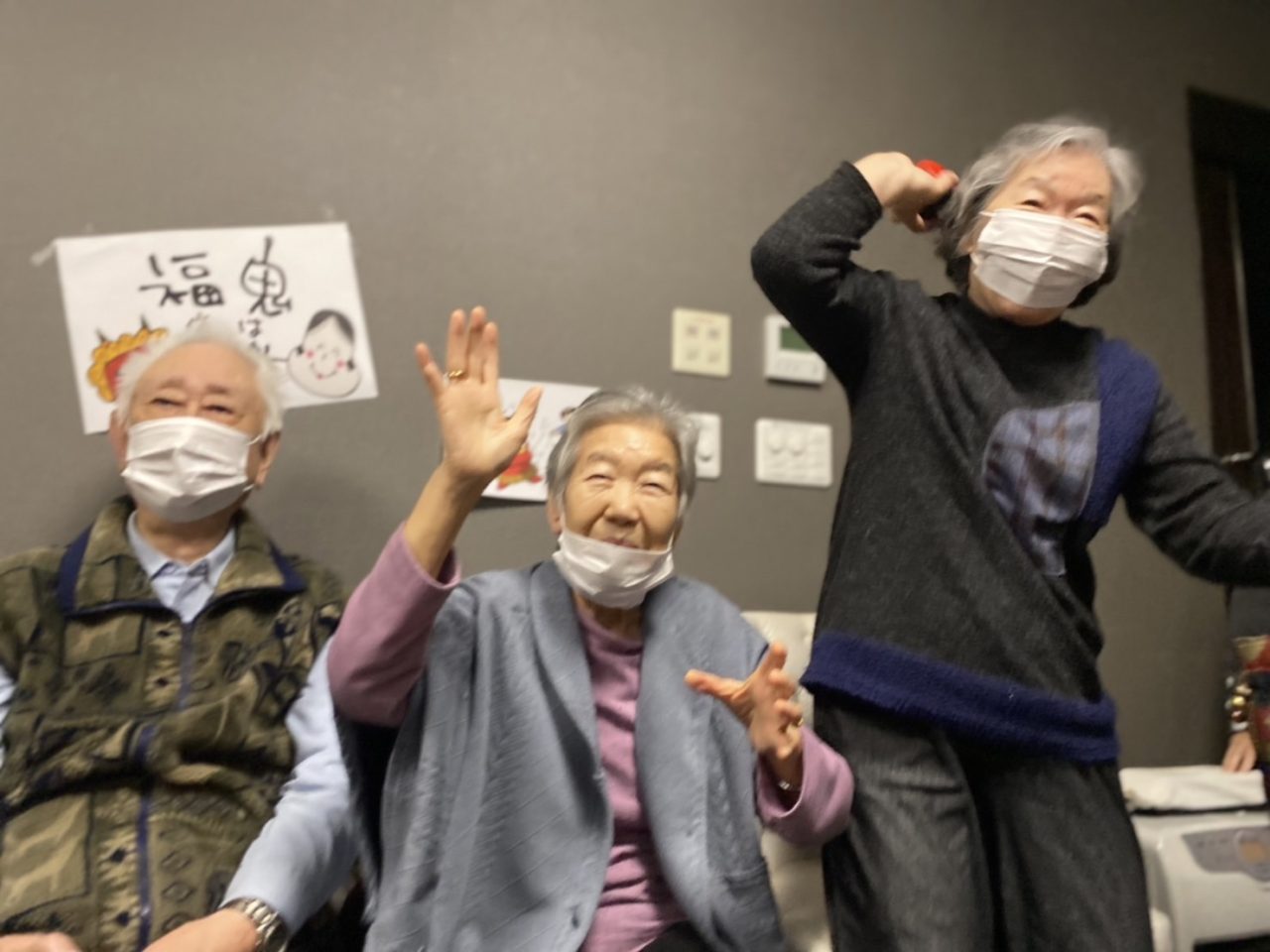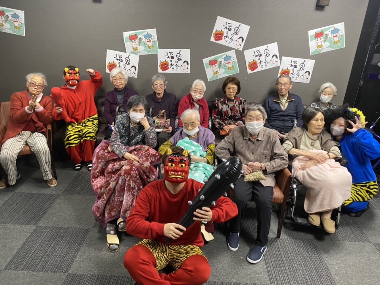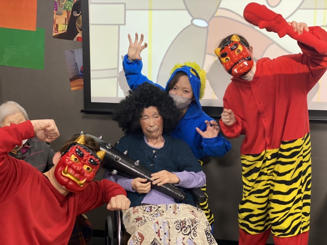 一度去ったものの、仲良くしたい鬼たち?利用者さんたちと記念撮影?