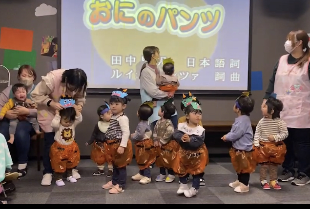 まずはきらきら保育園の鬼のパンツの発表でスタートです?可愛い子どもたちを身近に見て触れ合えて、とても嬉しそうでした°˖✧
