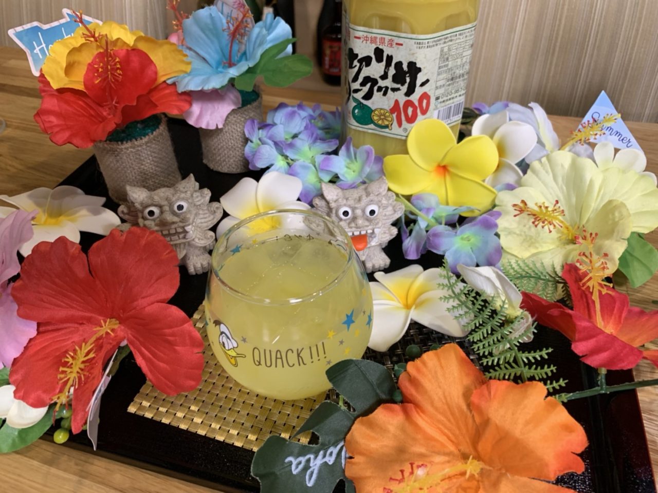 ゼリーとても美味しそうです!そして盛り付けや飾り付けも工夫されていて、まるで南国にいるかのような🏖