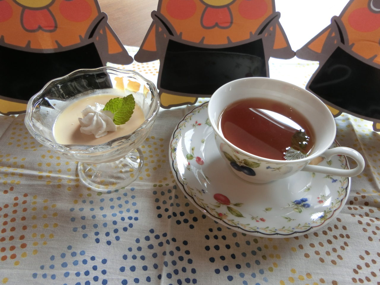 比内地鶏の手作りプリンとレモンティーのセットでティータイム☕️