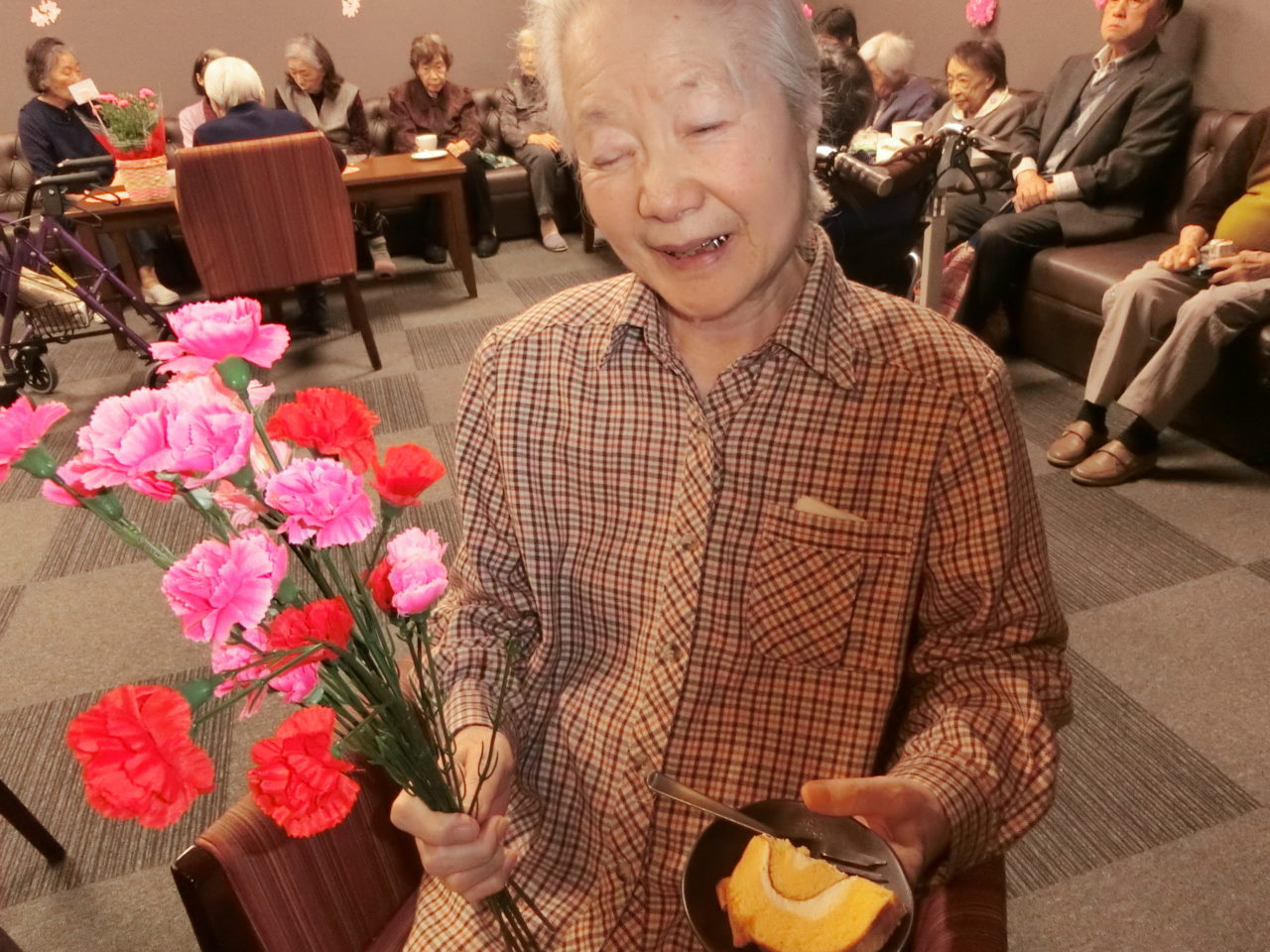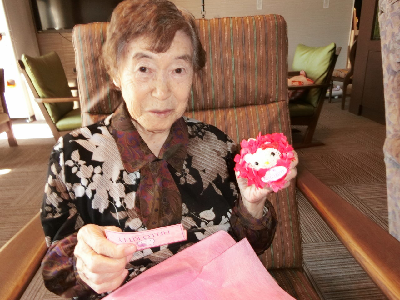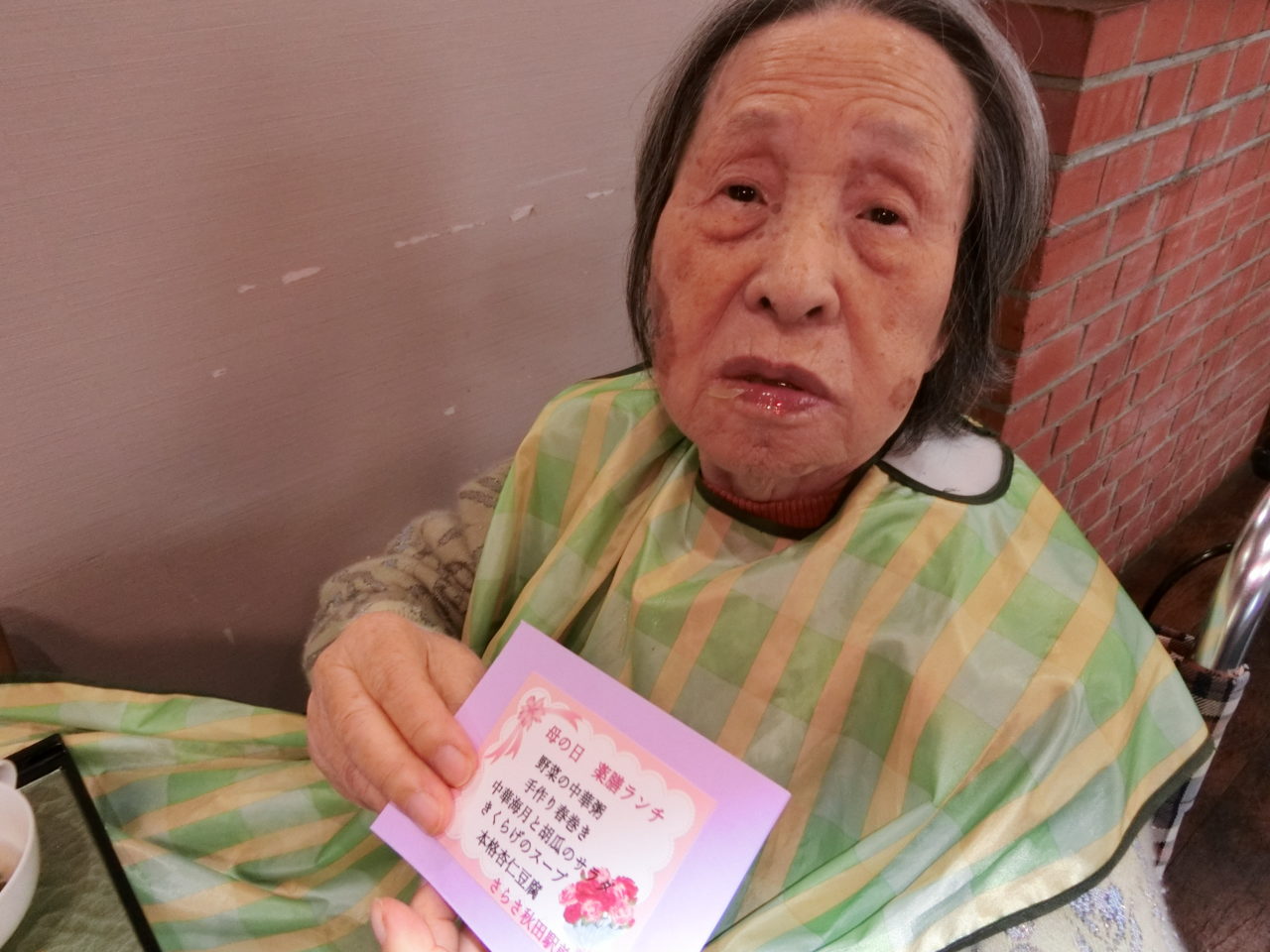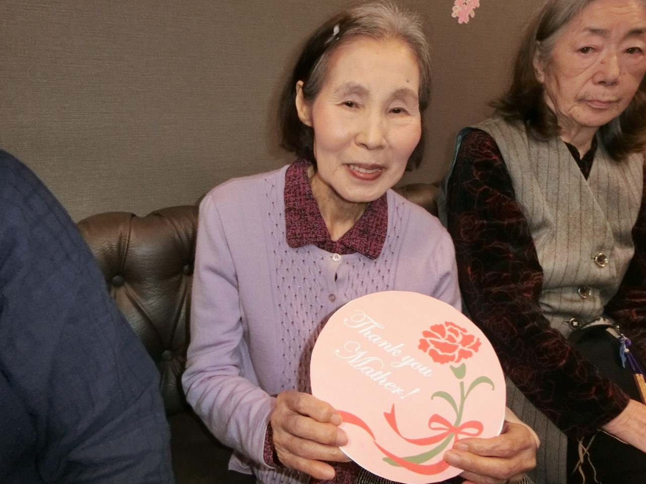 そして午後のラウンジでは、いつも職員のお手伝いをして下さるさらさのおかあさんへ