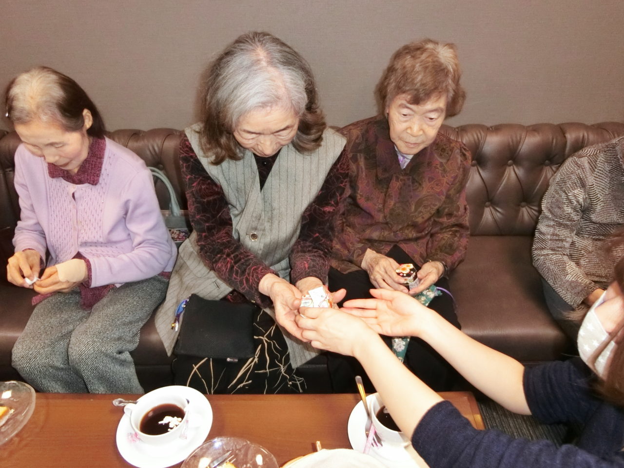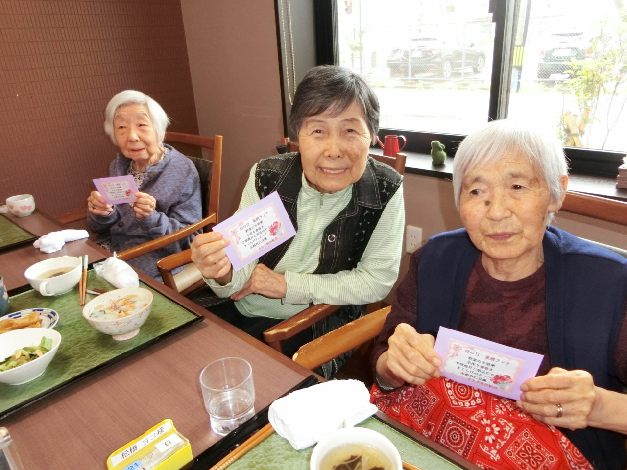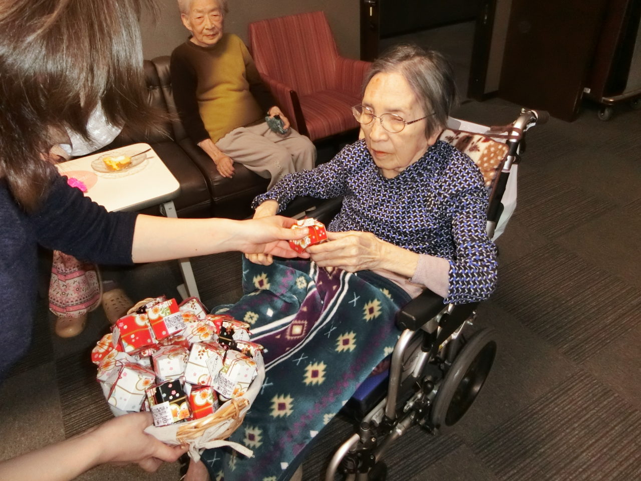 そして午後のラウンジでは、いつも職員のお手伝いをして下さるさらさのおかあさんへ