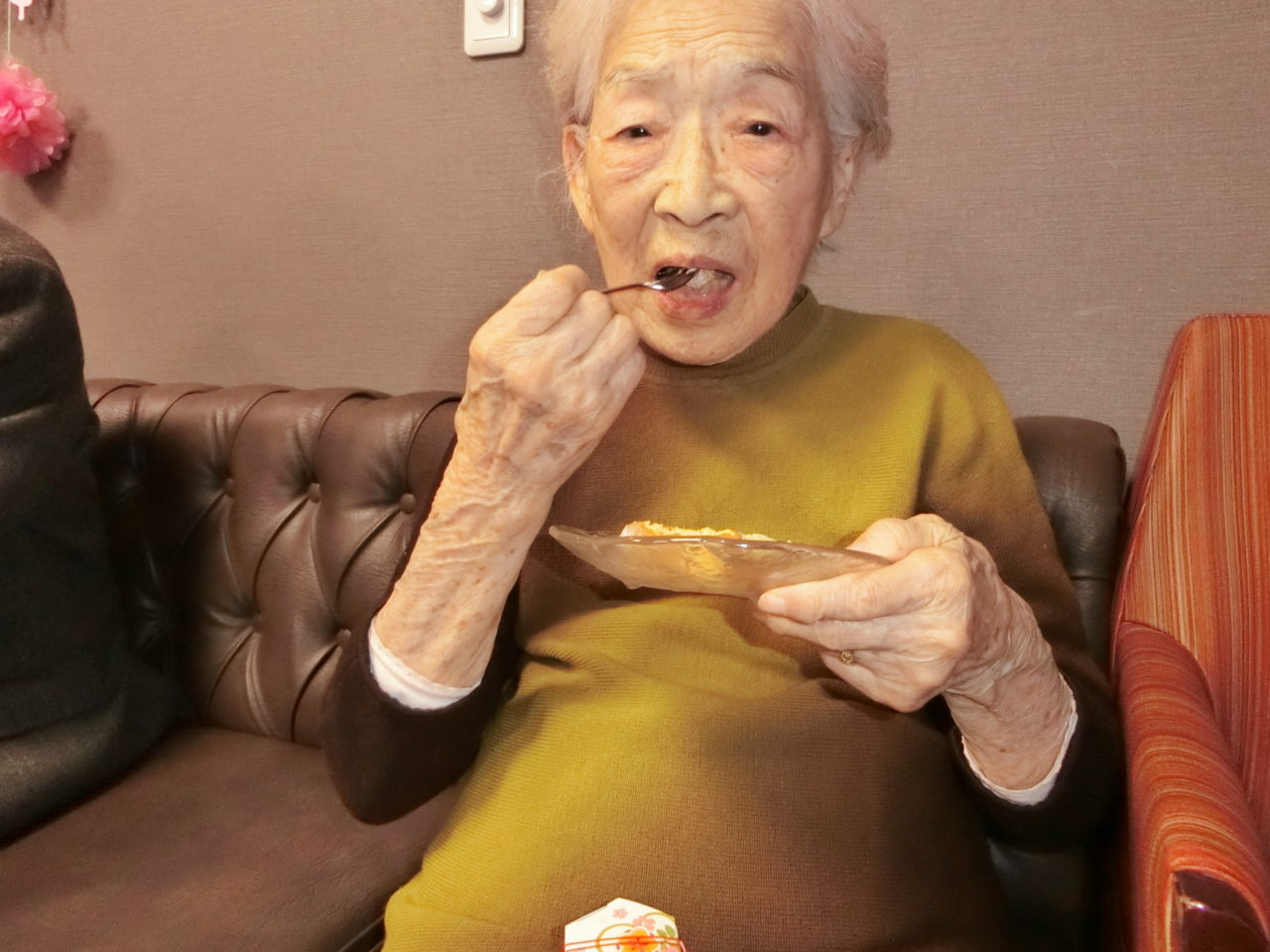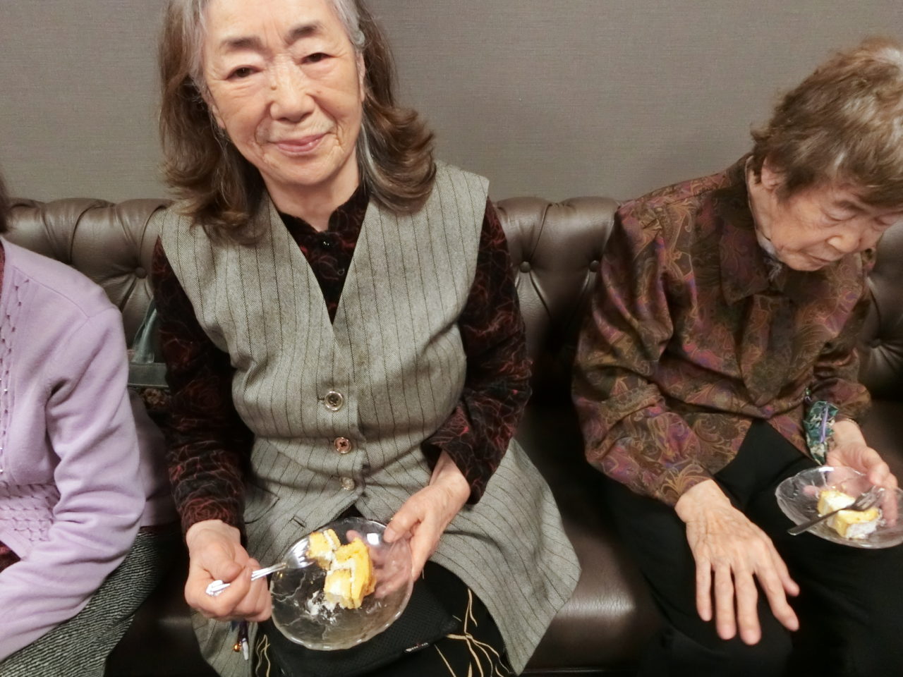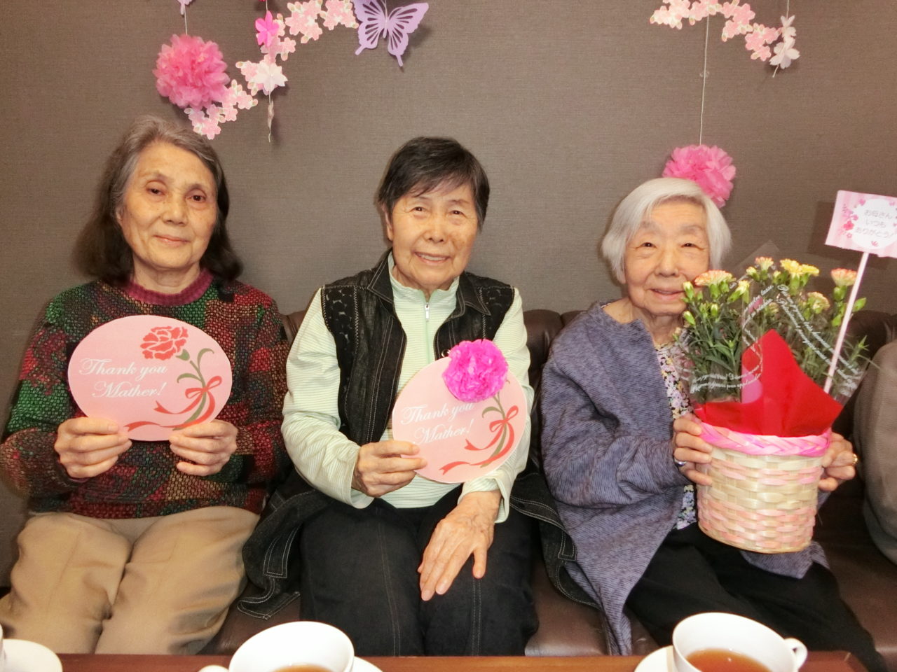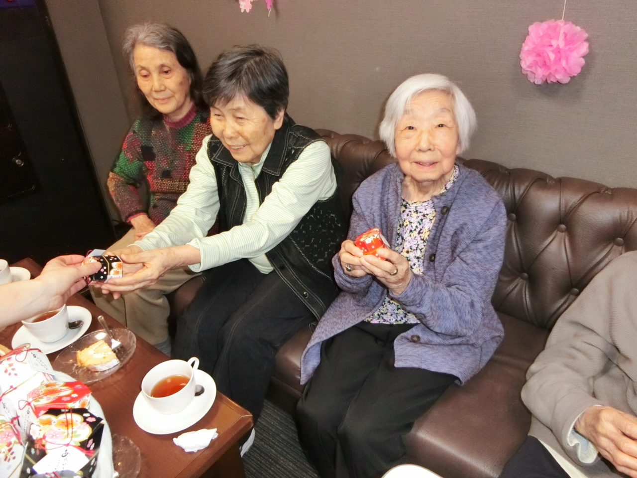 そして午後のラウンジでは、いつも職員のお手伝いをして下さるさらさのおかあさんへ