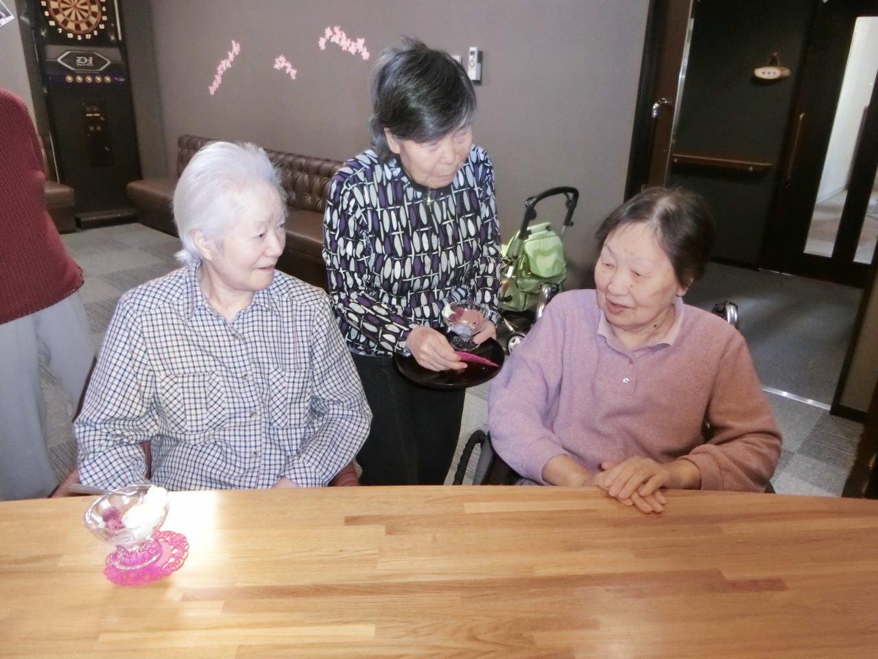 店員さんをしてくれた利用者さんと、他の利用者さんと楽しい会話して楽しいひと時を過ごされてますね❤️