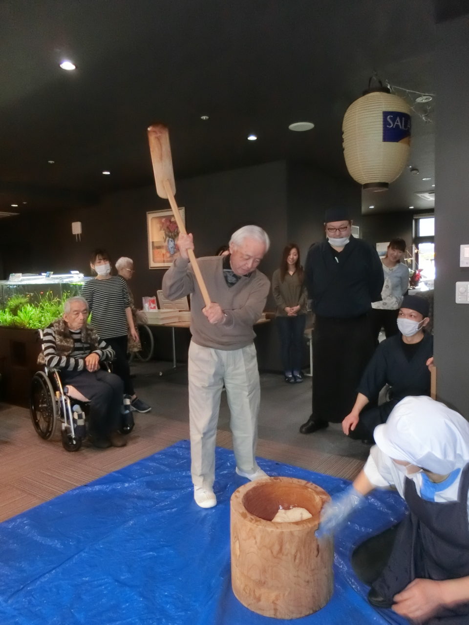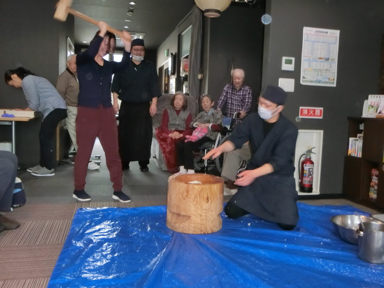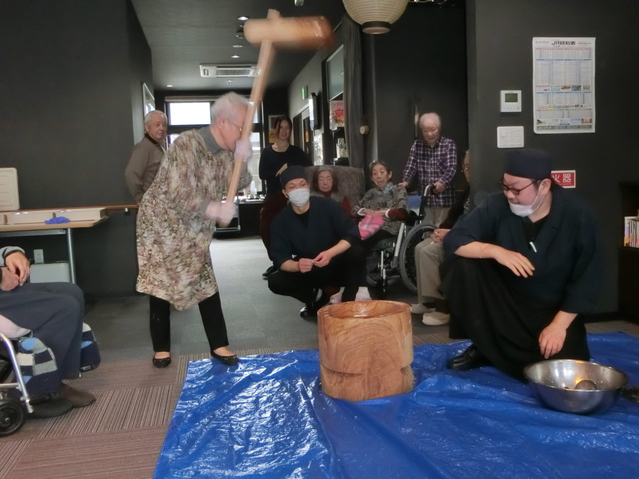 「よいしょ!よいしょ!」と掛け声を掛けながら皆さんで餅をつきます⭐