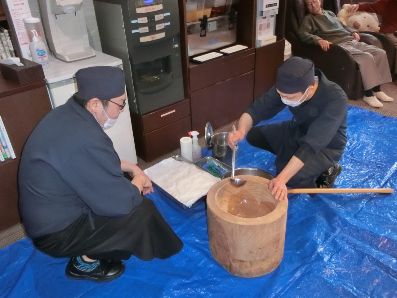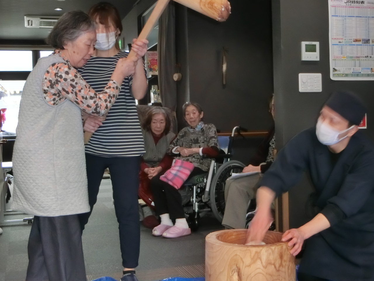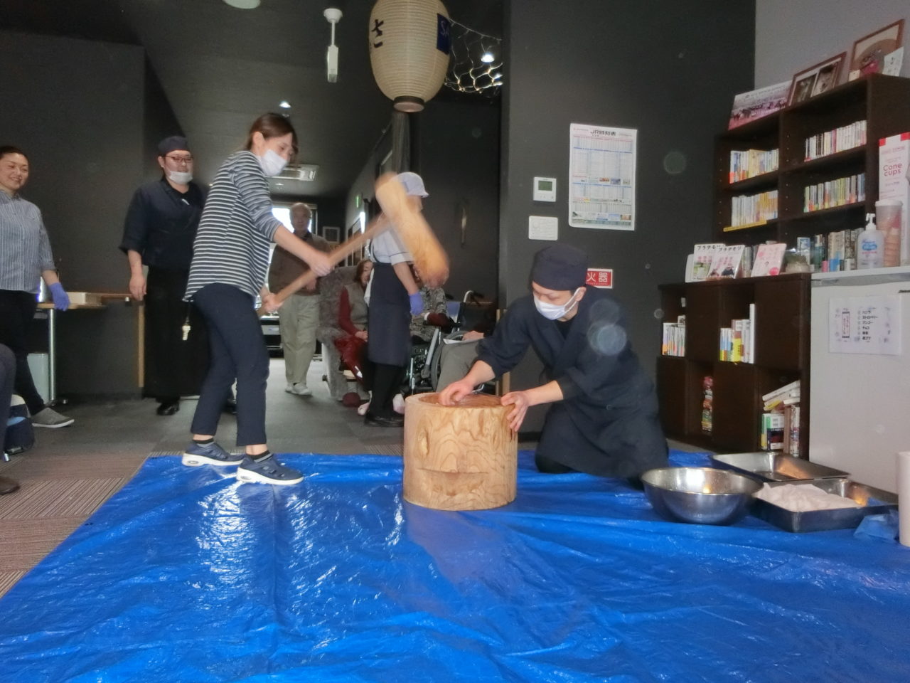 「よいしょ!よいしょ!」と掛け声を掛けながら皆さんで餅をつきます⭐