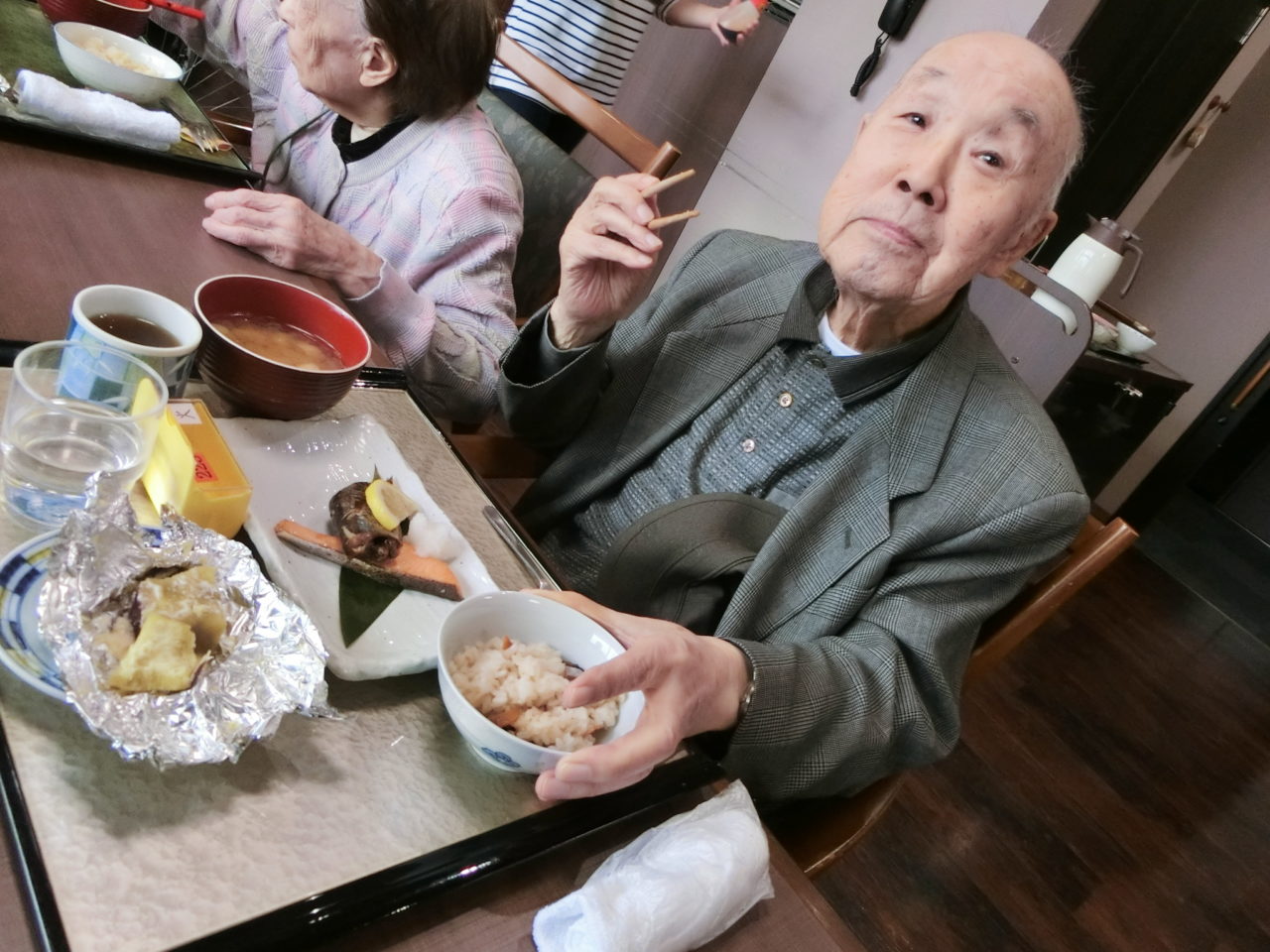 先日の昼食で秋の味覚御膳を皆さんで召し上がりました。