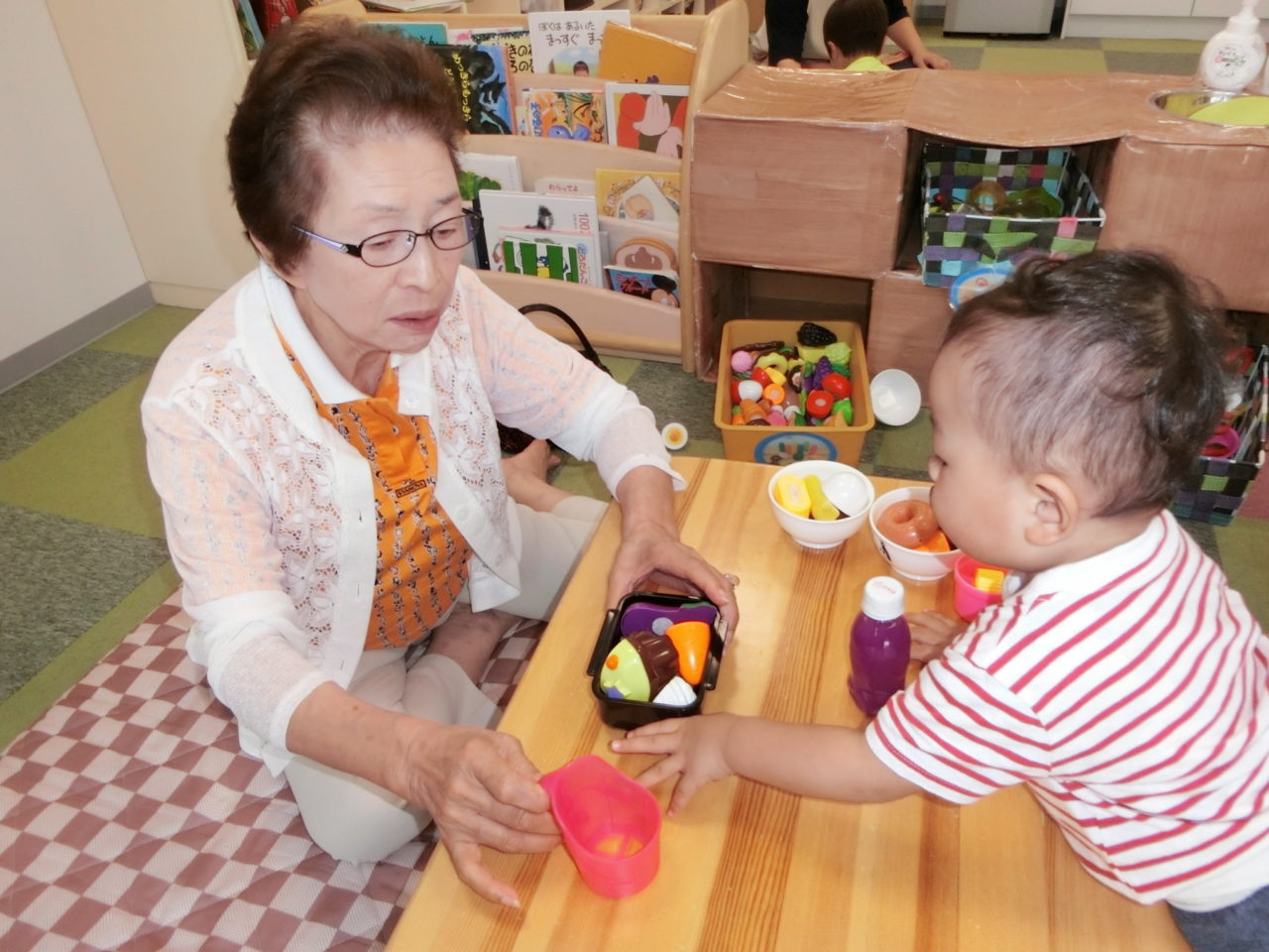 園内では一緒におままごと??