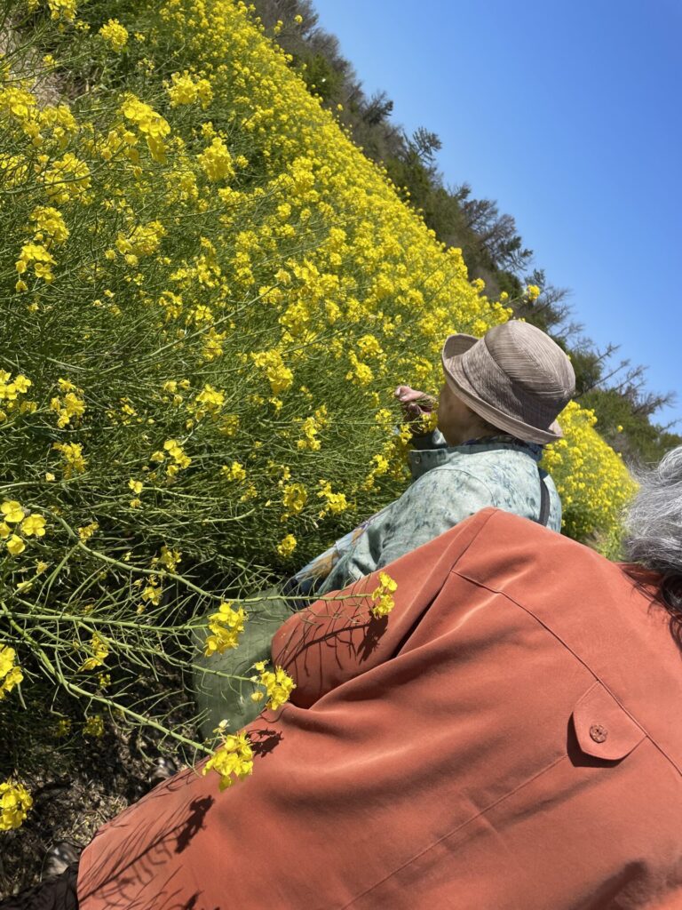 車の中から「わぁキレイ!!今日は本当に良かったわ」と菜の花ロードに感動・・