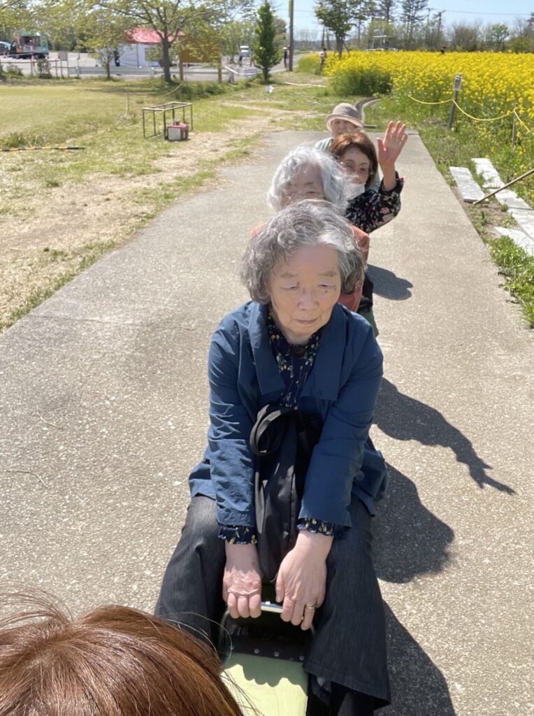 風をきって走る電車、そして落ちないようにしっかりと手すりに掴まっている利用者さんたち( *´艸`)
