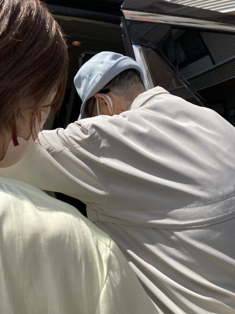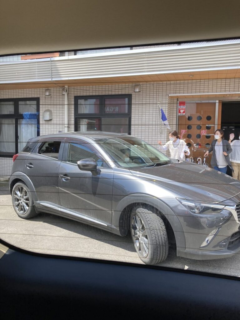 ゆっくりと車に乗り込みます(^_^)そして、パートナーが盛大にお見送りしてくれました?