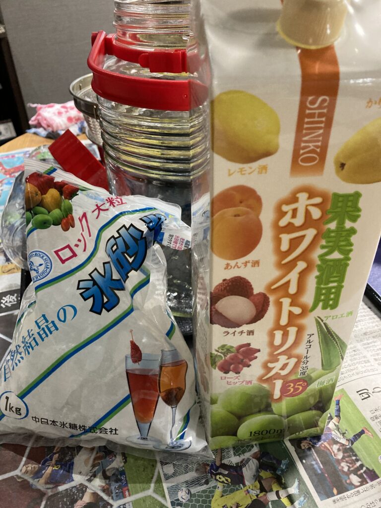 ビンに梅と氷砂糖、ホワイトリカーを入れて…