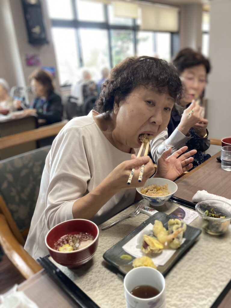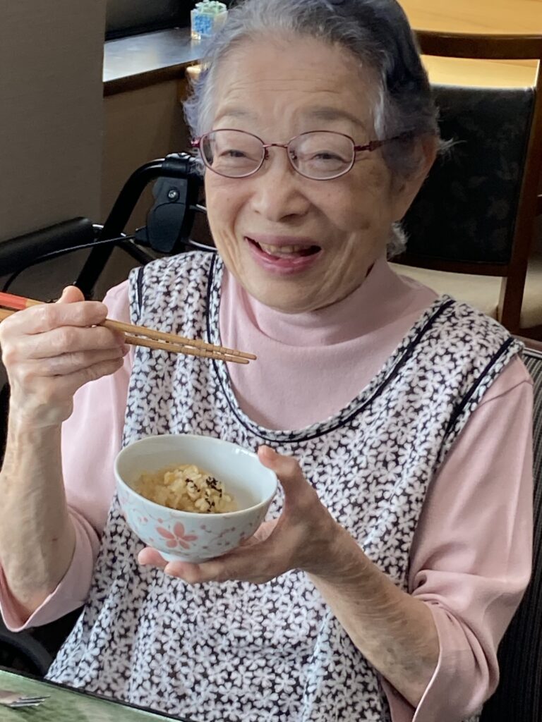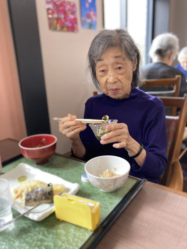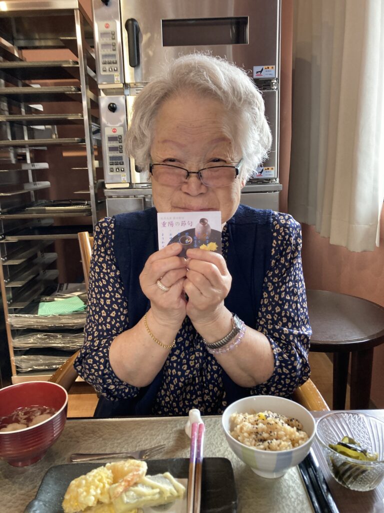 「栗ご飯とっても美味しい?」「菊の花の天ぷら初めて食べた❣美味しかった~♫」「今日は何の日?嬉しい(*´▽`*)」と