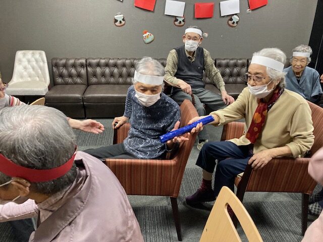 第一種目目はバトンリレー対決です✊一番前に座っているトップバッターから次々後ろへバトンを渡していきます。最後尾まで行ったら、トップバッターへ向けてバトンが帰ってきたらゴールです?