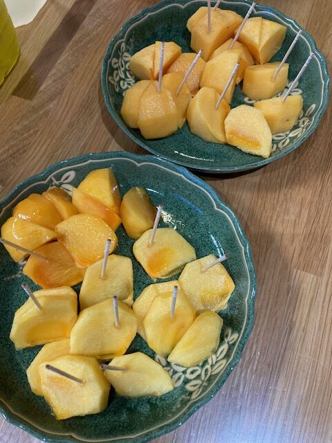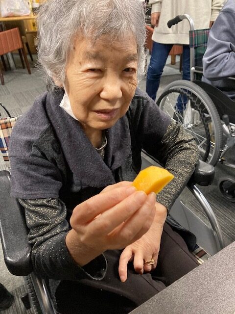 「山形にいったって聞いていたもの・・柿買ってきてくれたのね。美味しいわ」