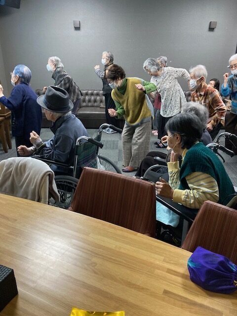 ラジオ体操で体を温めた後にお菓子やお茶とともにお出ししました(^^)/