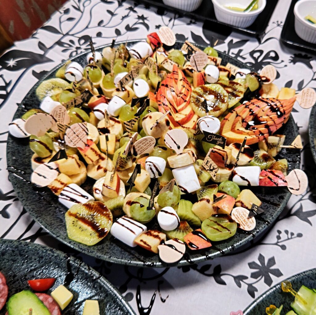 更にサラミ&きゅうりのピンチョスもご用意し、いざボジョレーDINNERの開幕です?✨