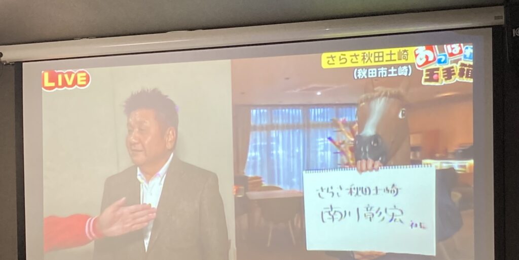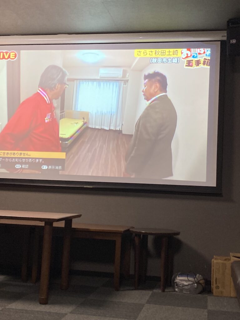 テレビで『さらさ秋田土崎』からの中継があるとのことで、ラウンジで皆で鑑賞会?✨