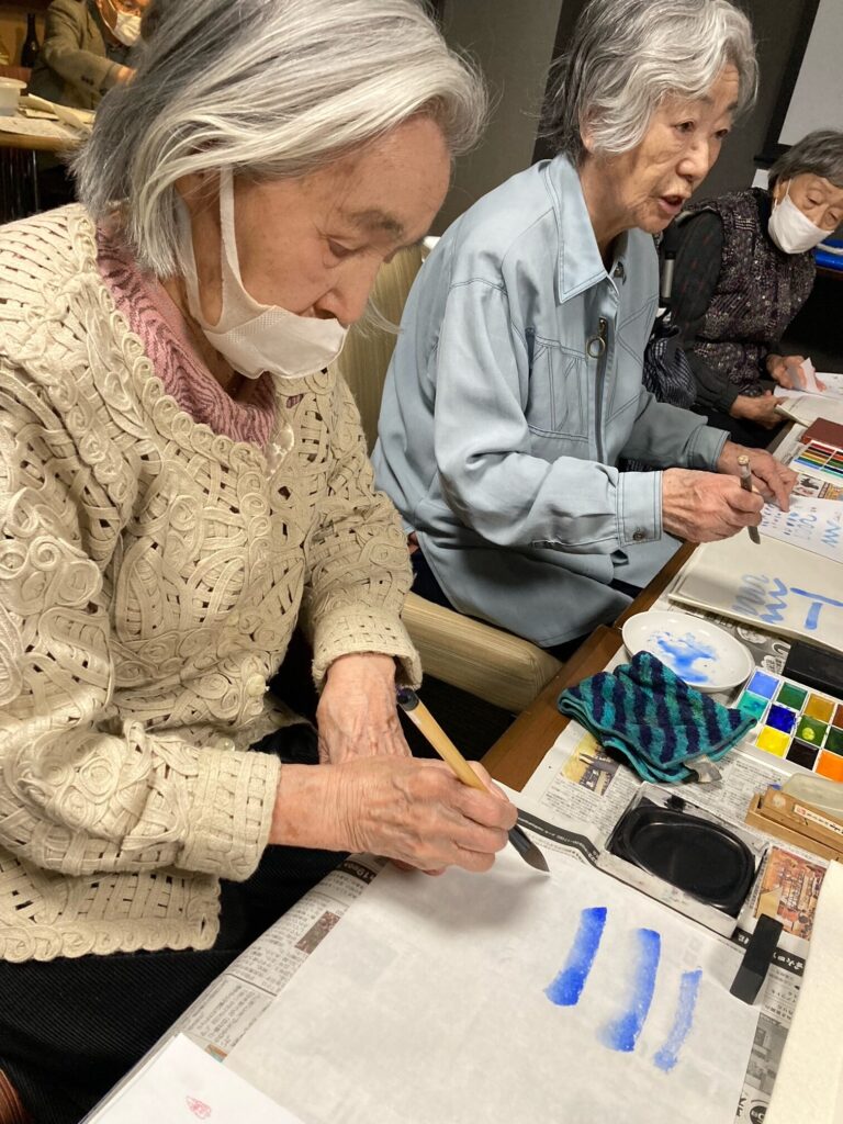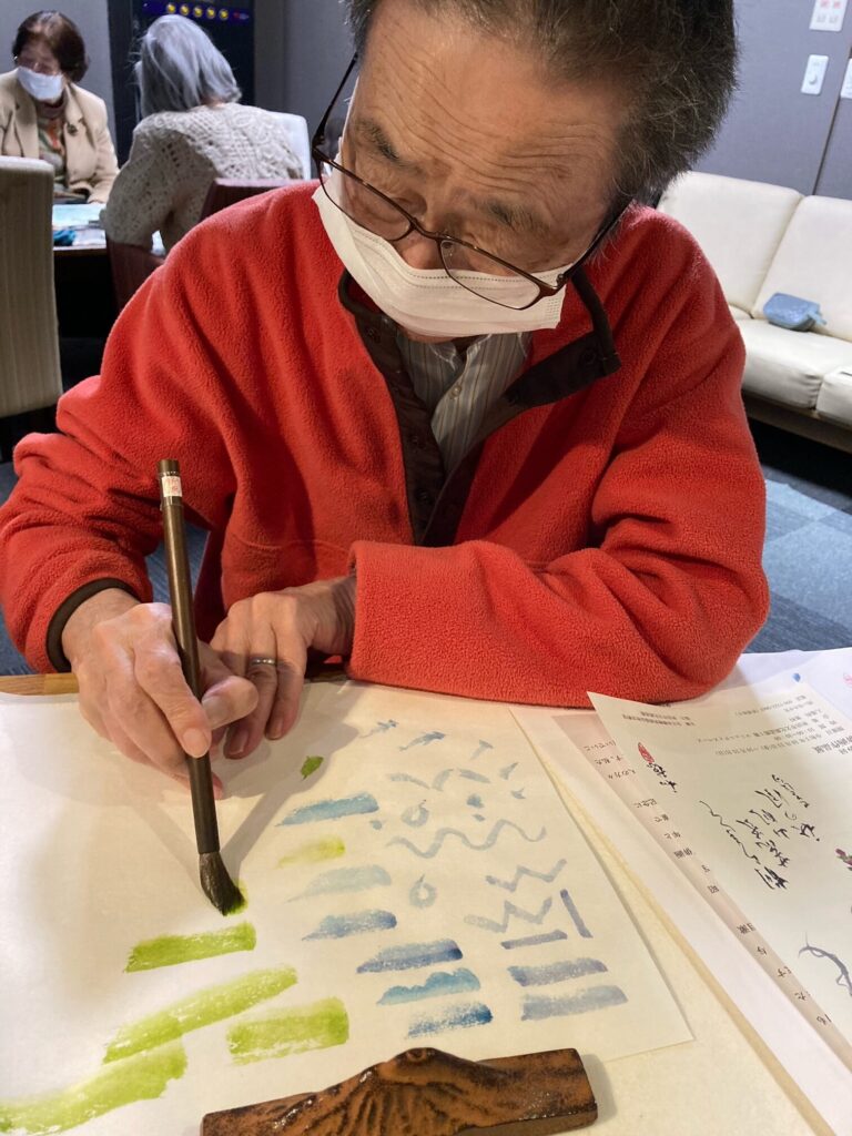 「このグラデーションが難しいなぁ・・・」「筆の持ち方が・・・」と苦戦しながら挑戦です?
