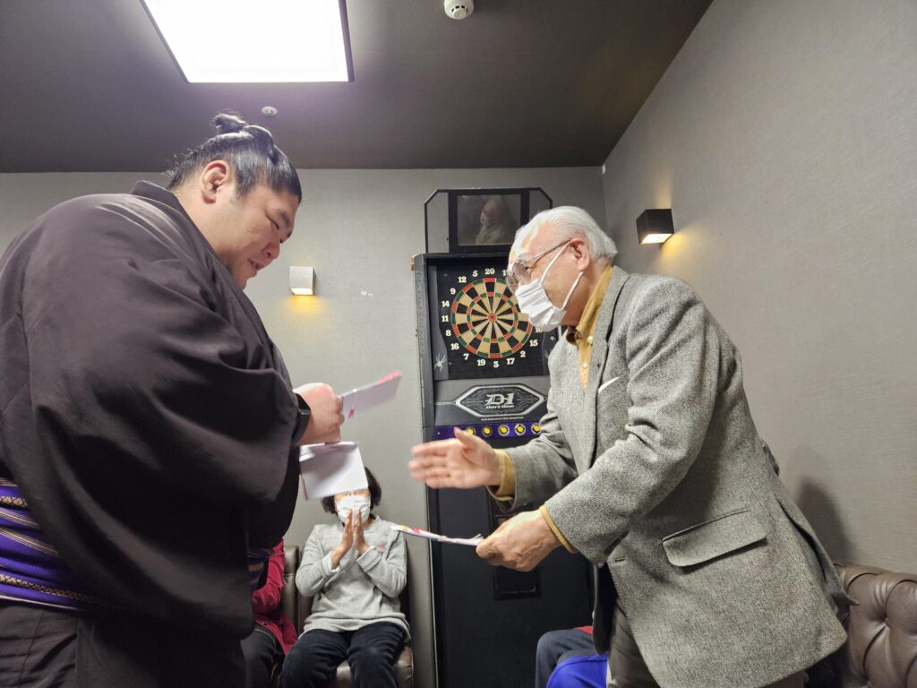 今回将豊竜さんからじゃんけん大会を提案して頂き、勝者3名には縁起物のプレゼントをご用意してくださいました?