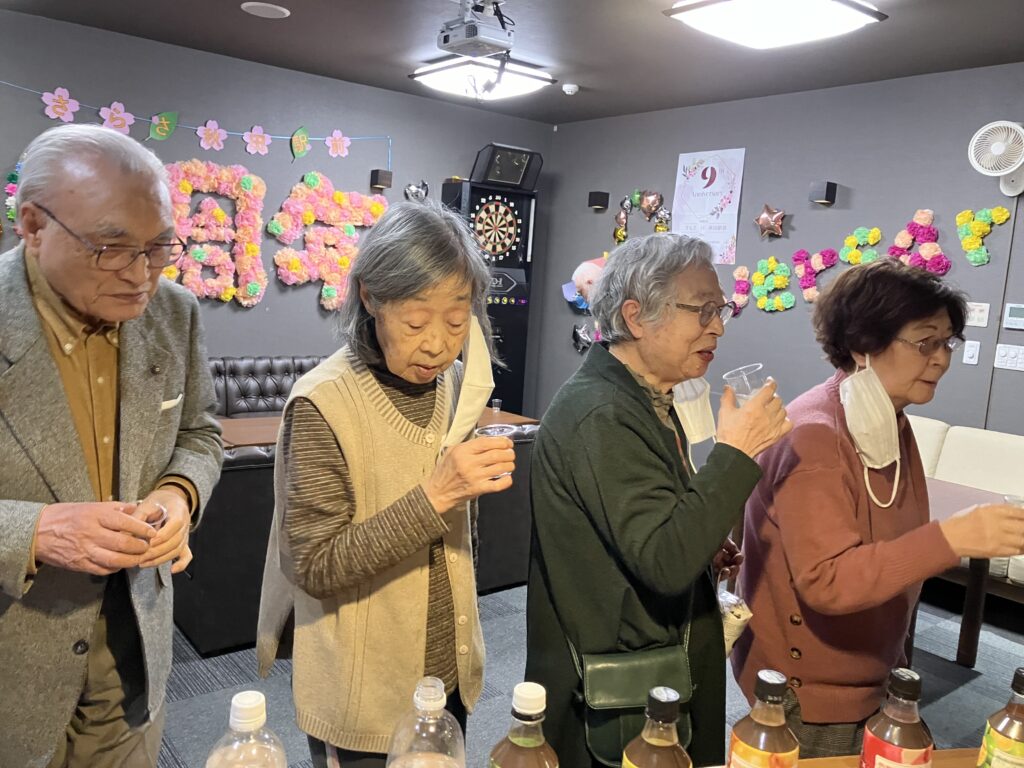 酢のジュース?「あまり酸っぱくないわね」「体にいいわね」「私はマスカット美酢が好きだわ」など皆さん興味津々で色々な美酢を飲み比べ、美酢入りのシャーベットもさっぱりしていて美味しいと、あっという間に売り切れてしまいました(^^♪