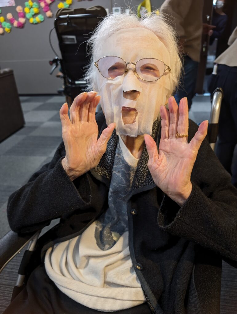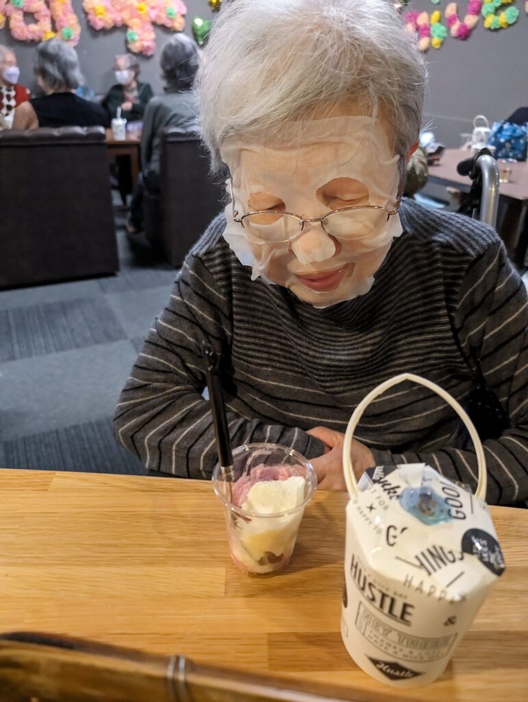 パックを外して、「なんだか白くなったわ」「お肌がキレイになったみたい」「しわがとれたわ」と大喜び(*´▽`*)