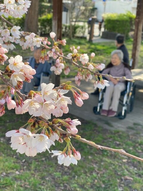 テラスを眺めながら「あったかくなってきたねー。」「今日はお花見には最高だね。」と皆さんの会話が聞こえてきたので、早速近くに公園まで桜を見に行ってきました🌸