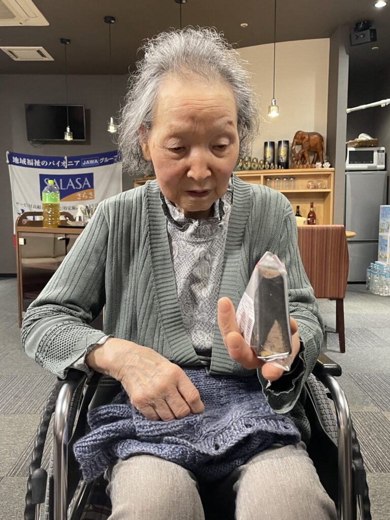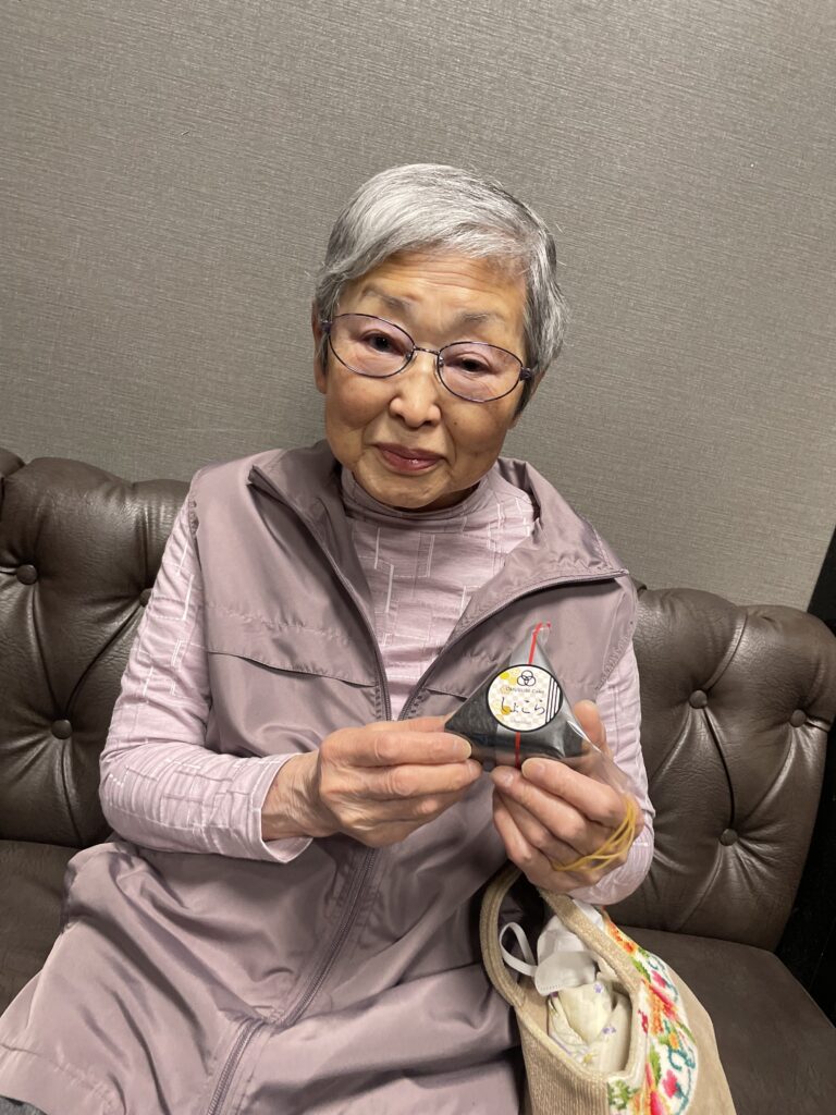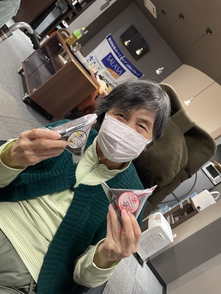 初めて見る、謎の物体に「これ、おにぎりだか?」と興味津々のHさん( *´艸`)