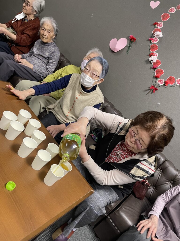 「さっ、準備出来たわよ✨早く食べましょう♪」と人数分のお茶🍵を準備してくださるHさん💖