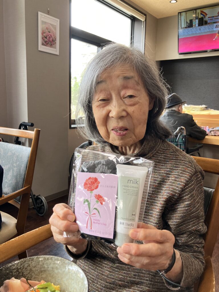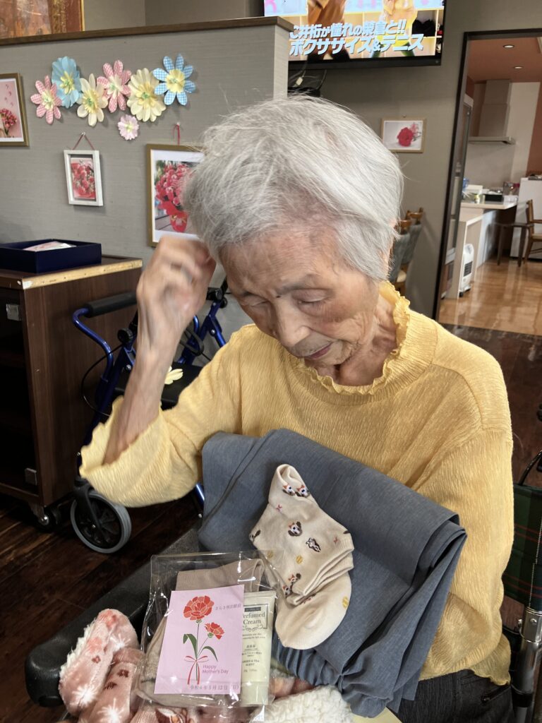 午前中ご家族さんからの、母の日のプレゼントが届き、みなさんニコニコ笑顔でした!!