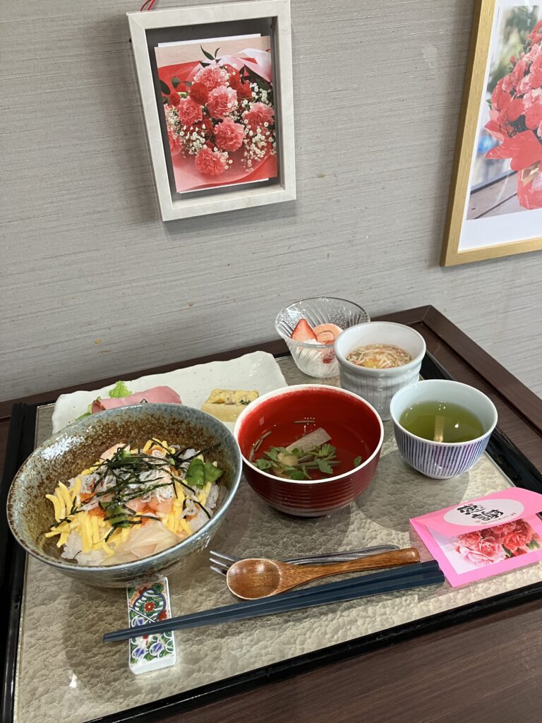 :ちらし寿司:茶碗蒸し:ポークパストラミキッシュ:じゅんさいと結びの湯葉のお吸い物:ロールケーキ