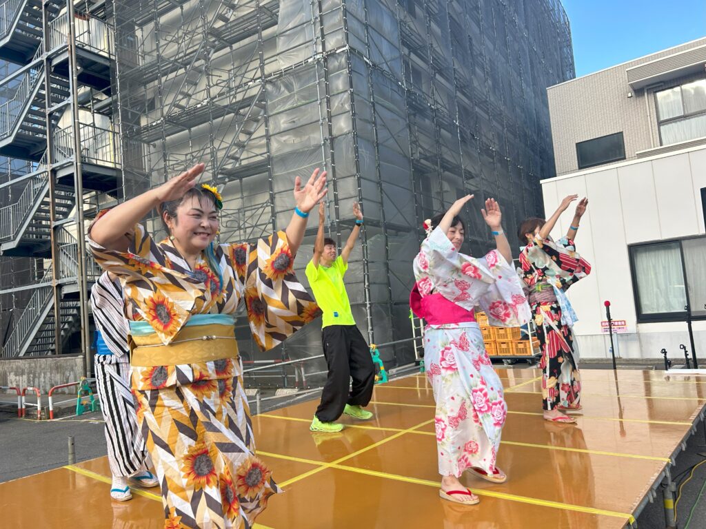 最後のステージは酒泡酒泡クラブさんの盆踊りです✨参加型のステージとなっており、ご来場の皆様と一緒に踊りました😆ご利用者のAさんも参加されていました〜♪