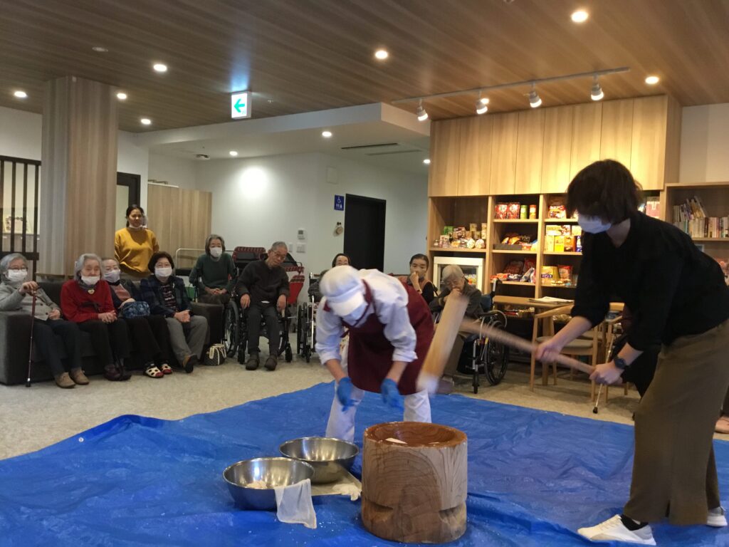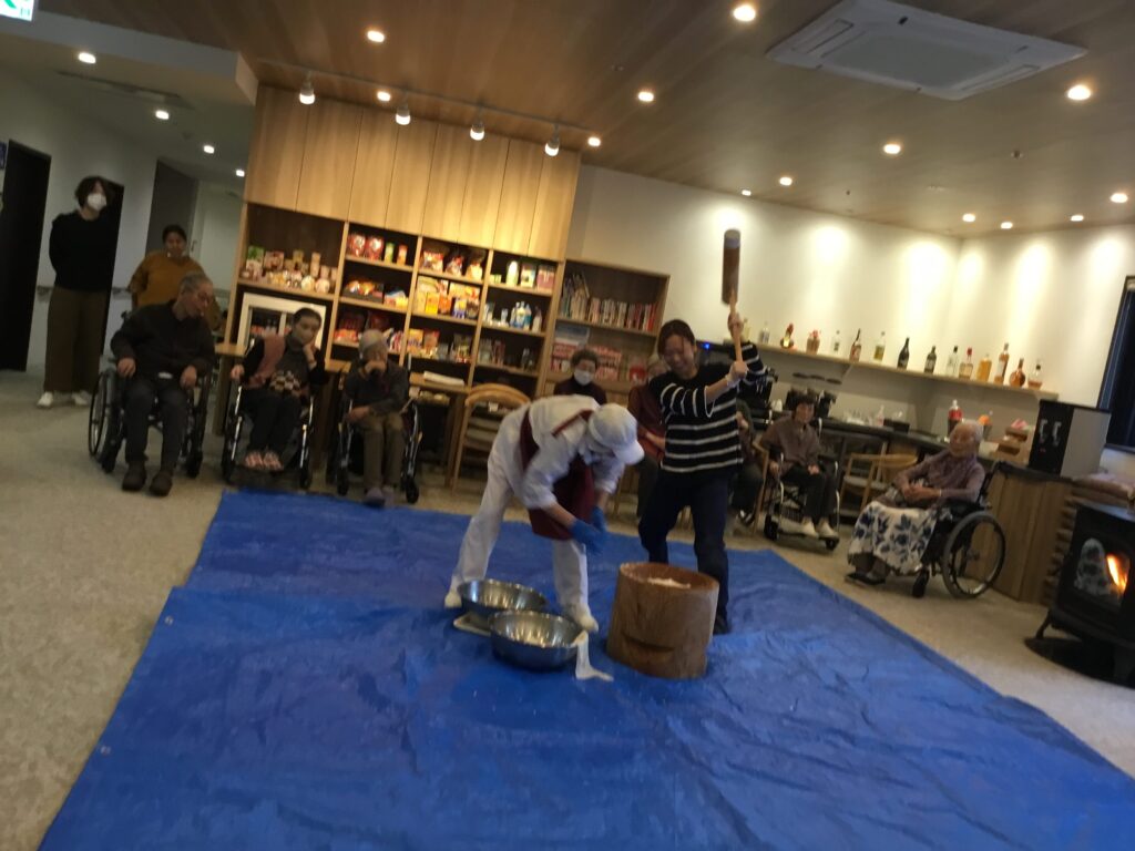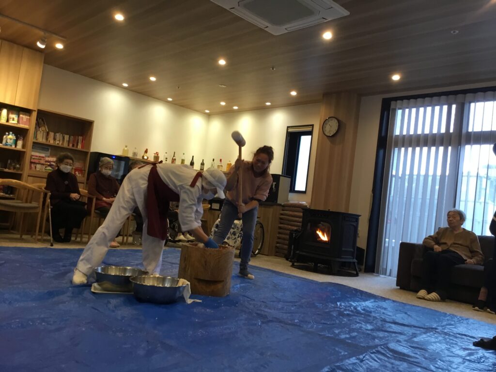 そして続々と利用者さんたちにも、餅をついてもらいます🥰