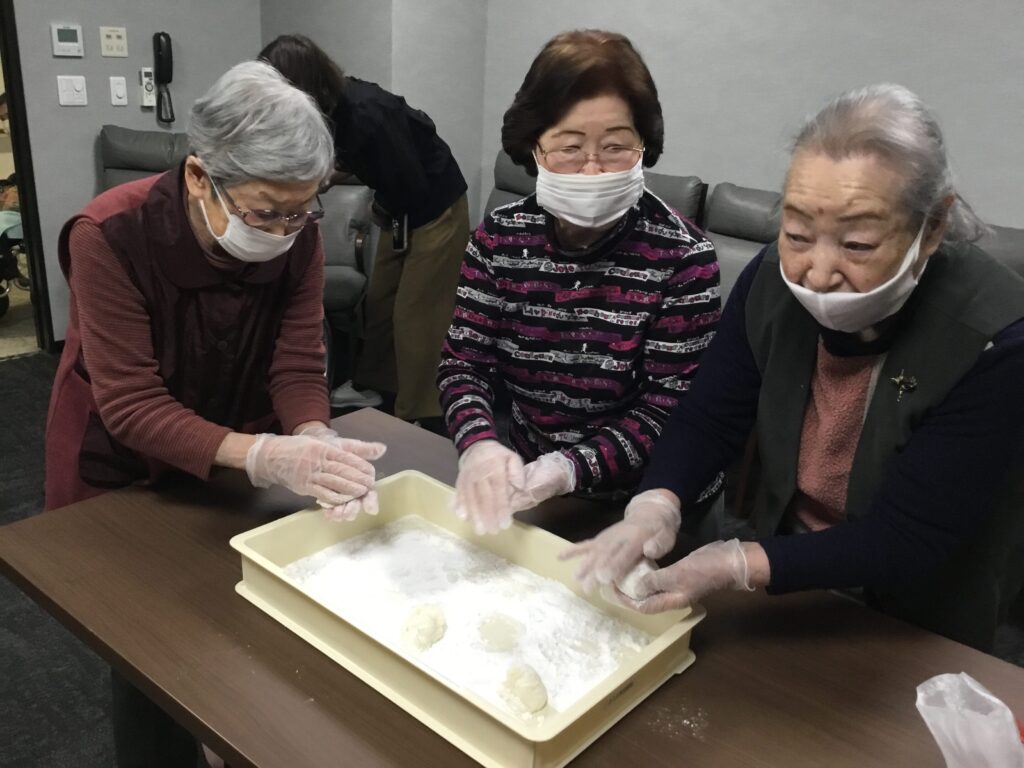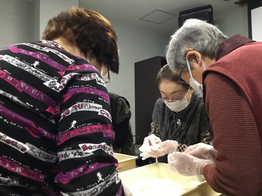 無事につきあがったお餅を鏡餅にしていきます!プロの手捌きであっという間にお餅が形成されていきます👏さすが人生の先輩方!