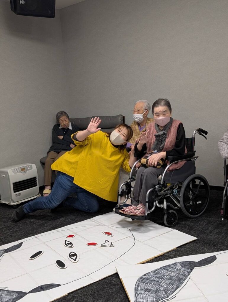「もっと前!」「右!右」などの利用者さんたちのアシストを借りなんとか成功❓😂