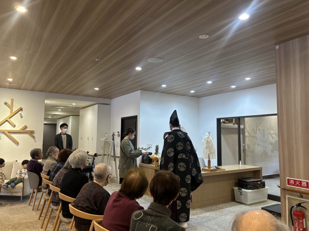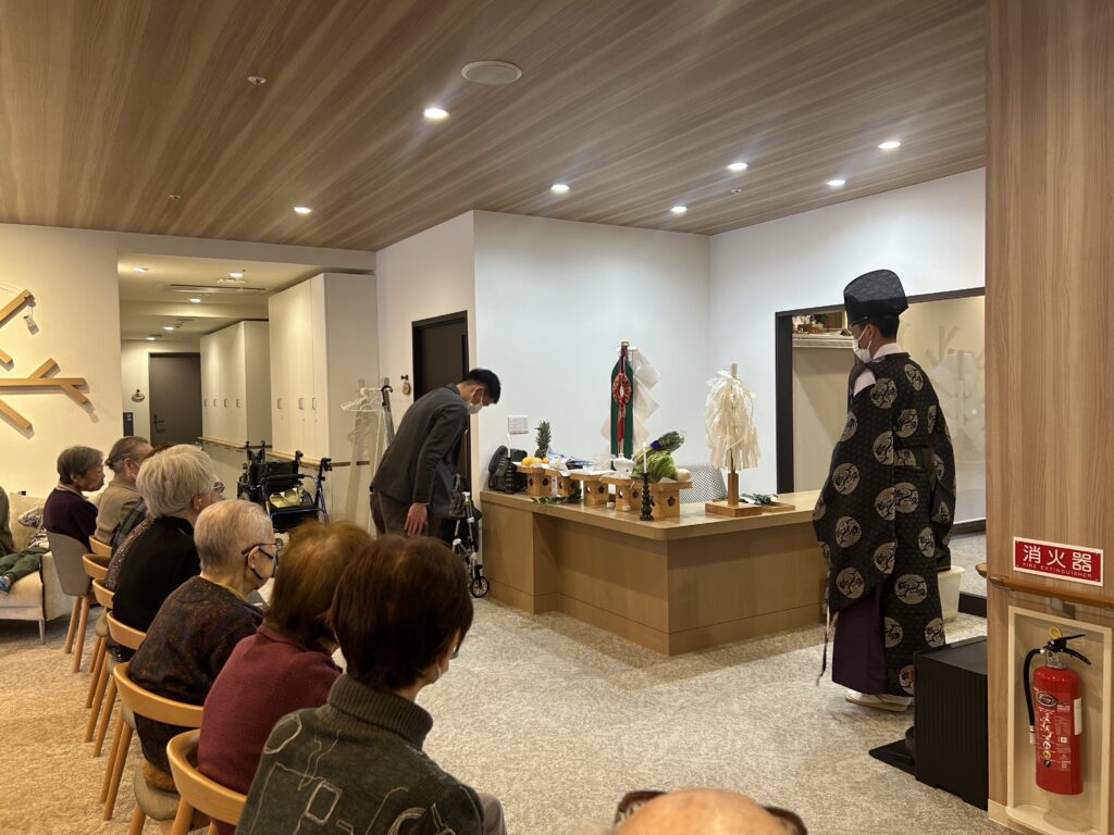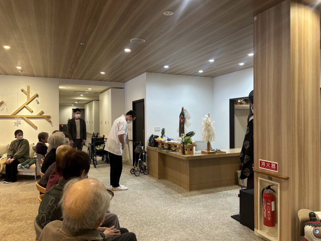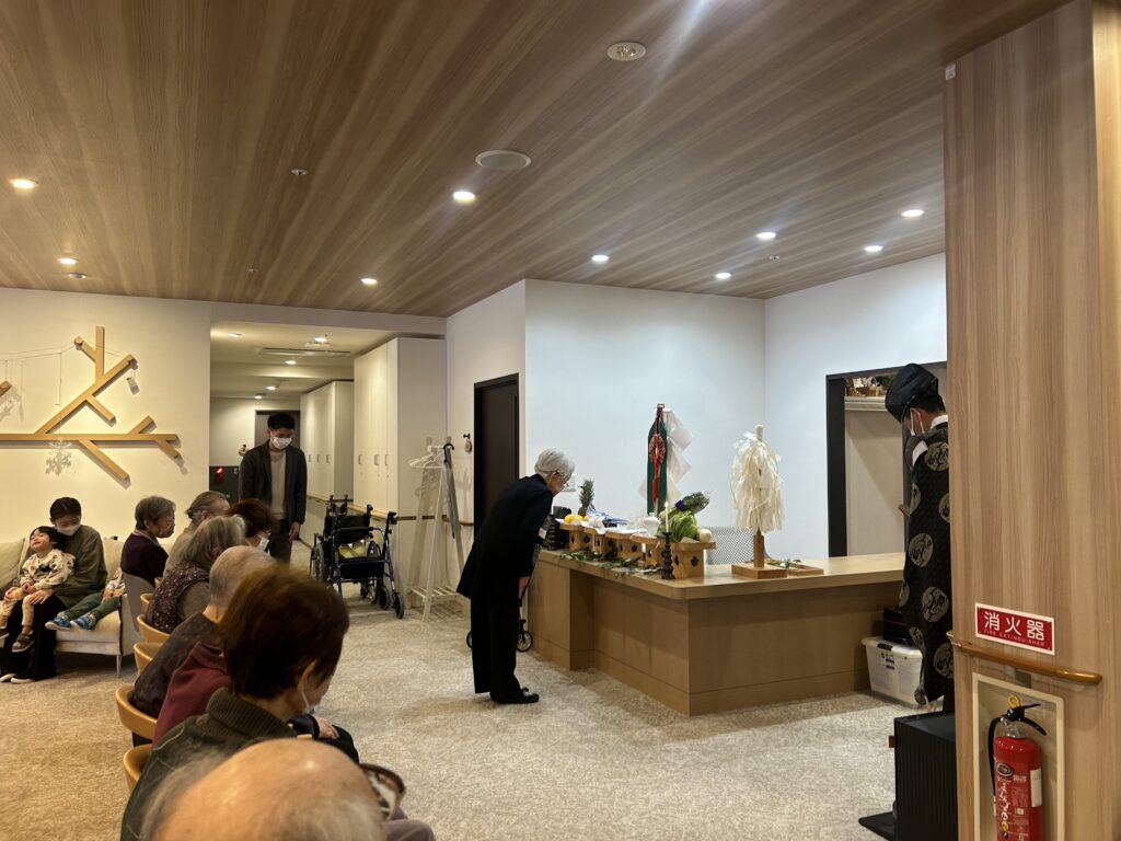 今年一年の願いを祈る為に続々と利用者さんがロビーに集まります😮