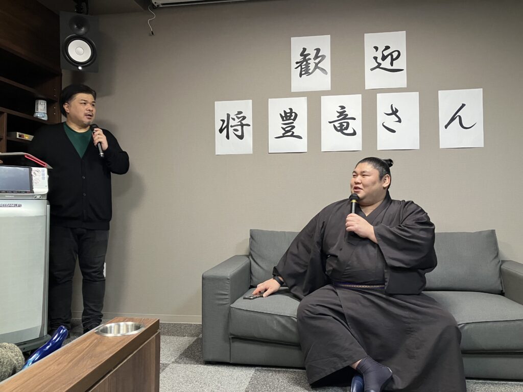 質問コーナーでは、「ちゃんこ鍋には、肉と魚が入りますか?」との質問に「部屋によっても違うけど、時津風部屋は肉なら肉、魚なら魚と両方入ることはない」との回答。