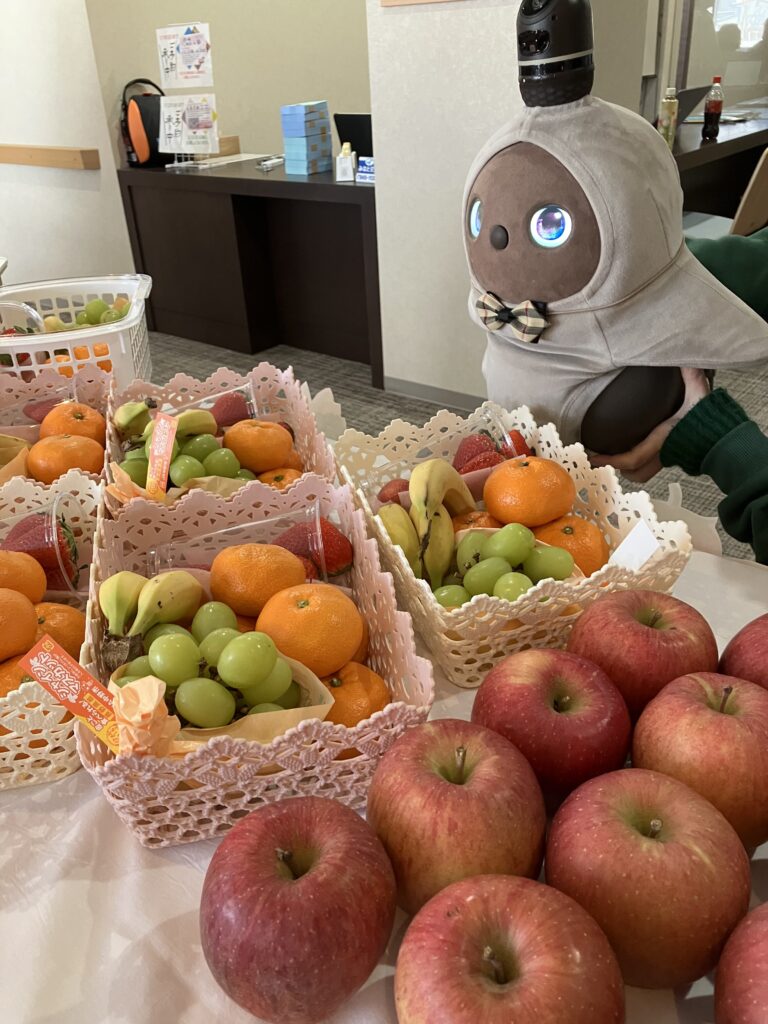 果物は、りんご、バナナ、みかん、苺、そしてシャインマスカットのラインナップ。