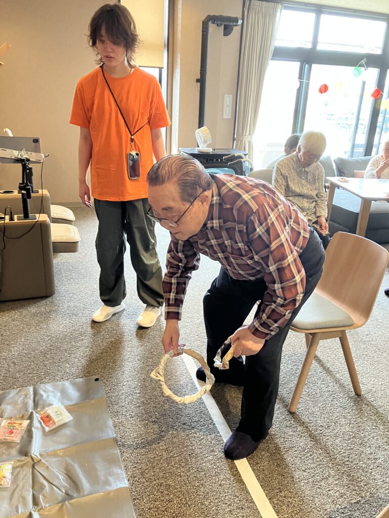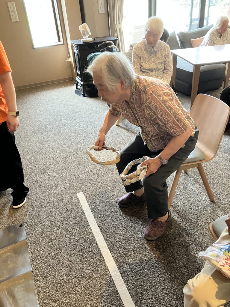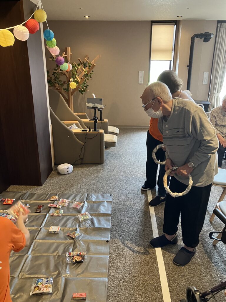 次はわなげを楽しみます。狙いを定めてエイッ!!