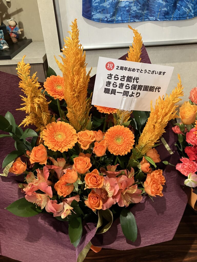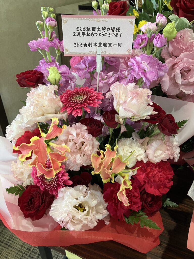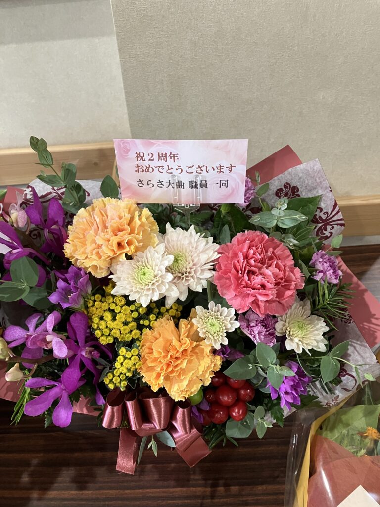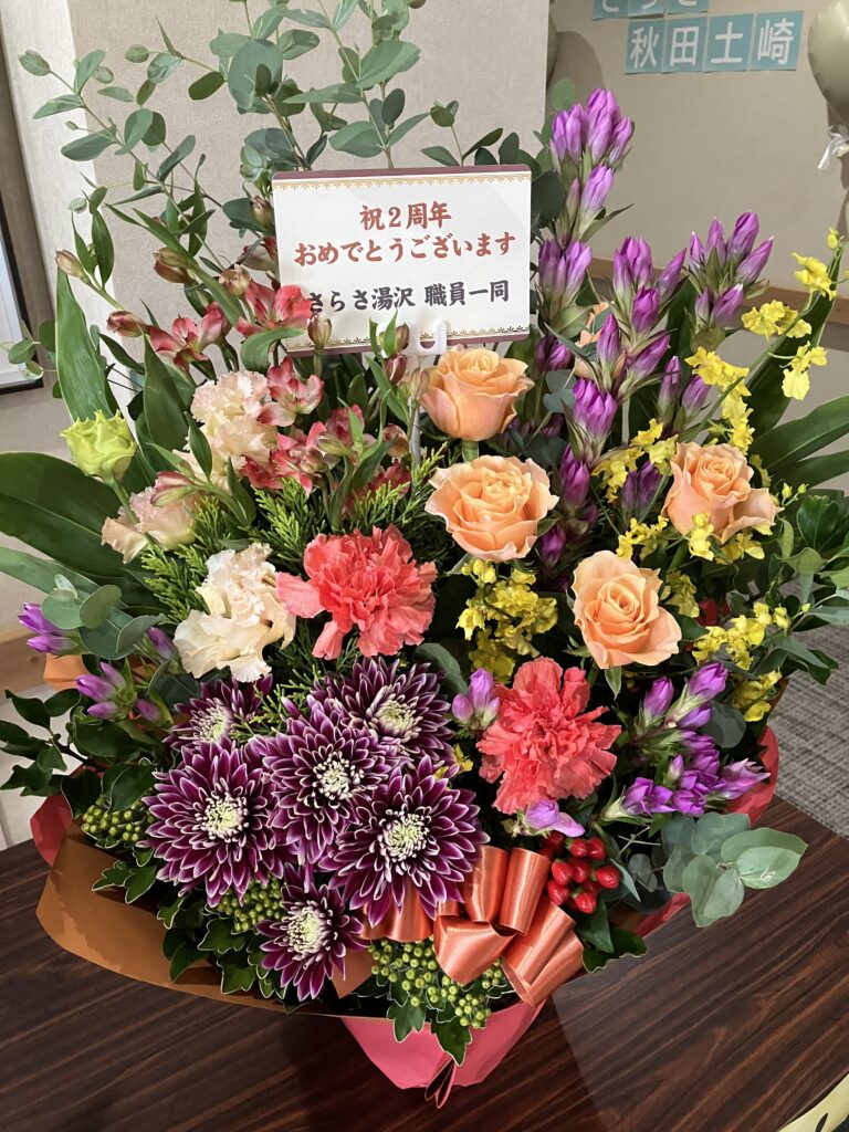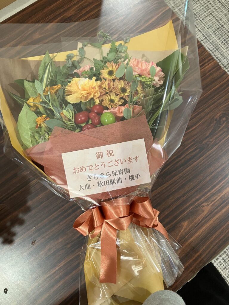 JAWA秋田グループの仲間からお祝いの言葉と、色鮮やかなお花をいただきました。
