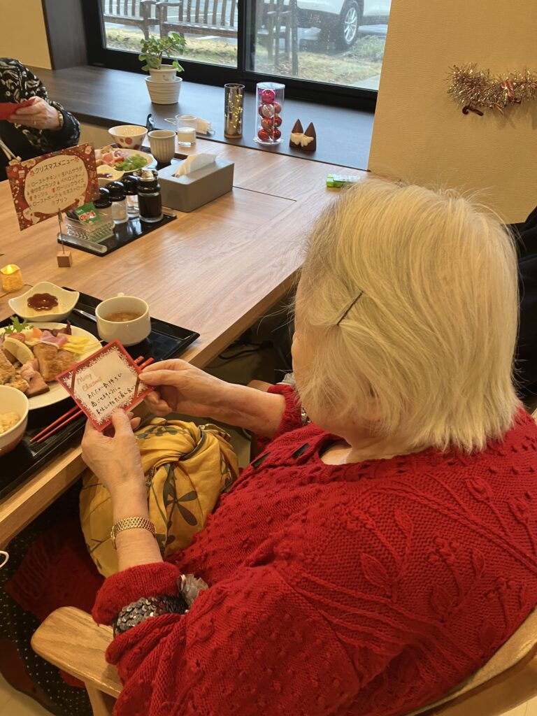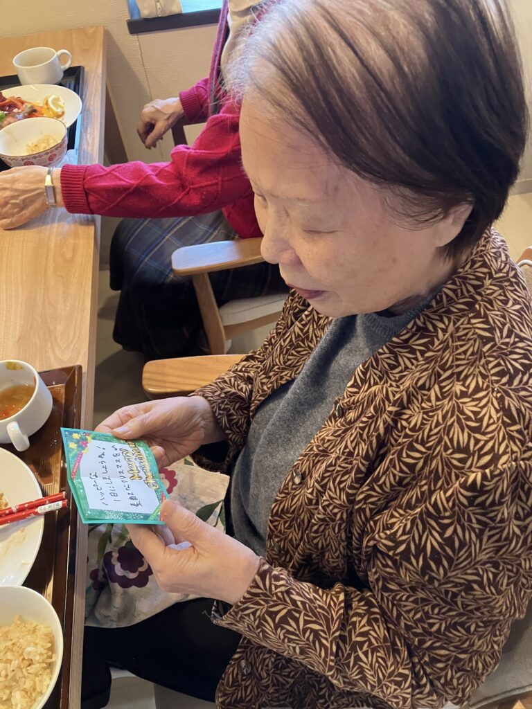 ランチと共にお渡しした職員みんなで書いたクリスマスカード。