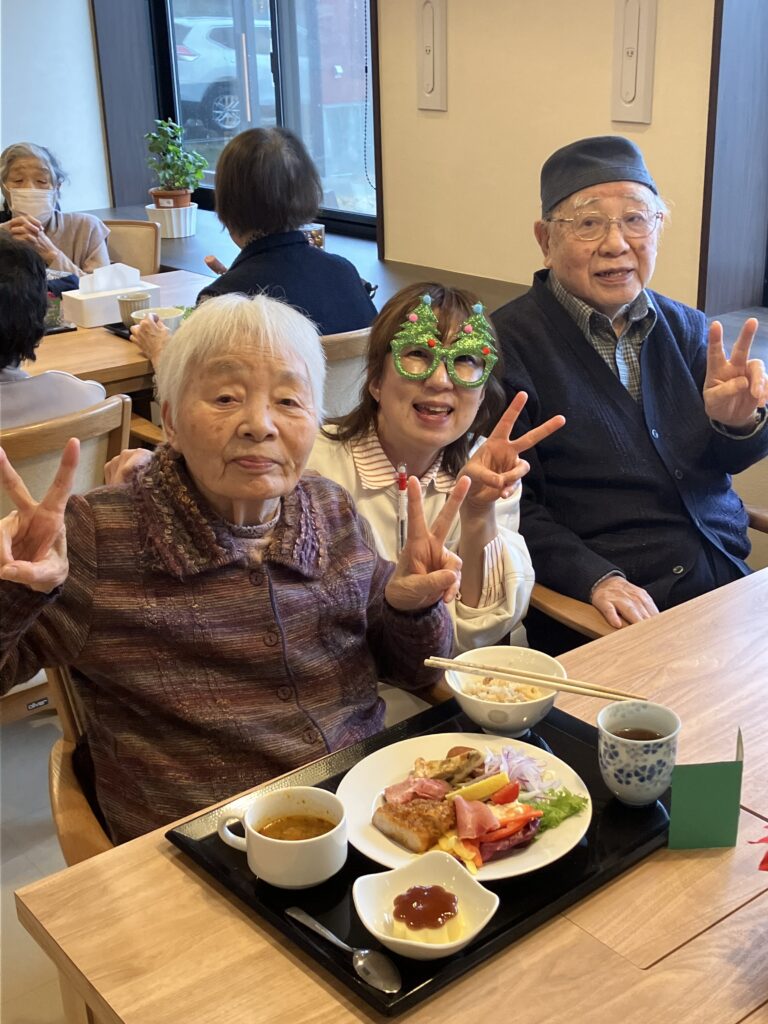 職員も利用者さんもクリスマス衣装を身につけてクリスマス気分を味わっていました😚😄