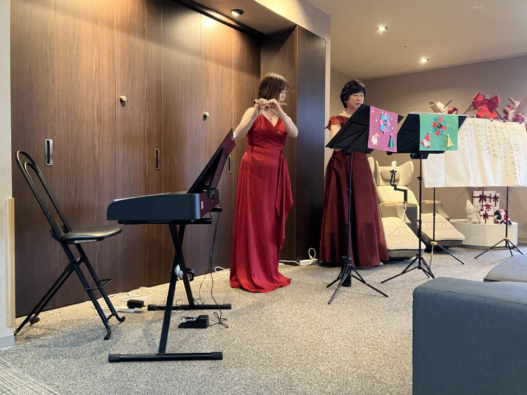 お腹を満たした後は、フルートの佐々木雅子氏・オーボエの京野香氏によるクリスマスコンサートです♬