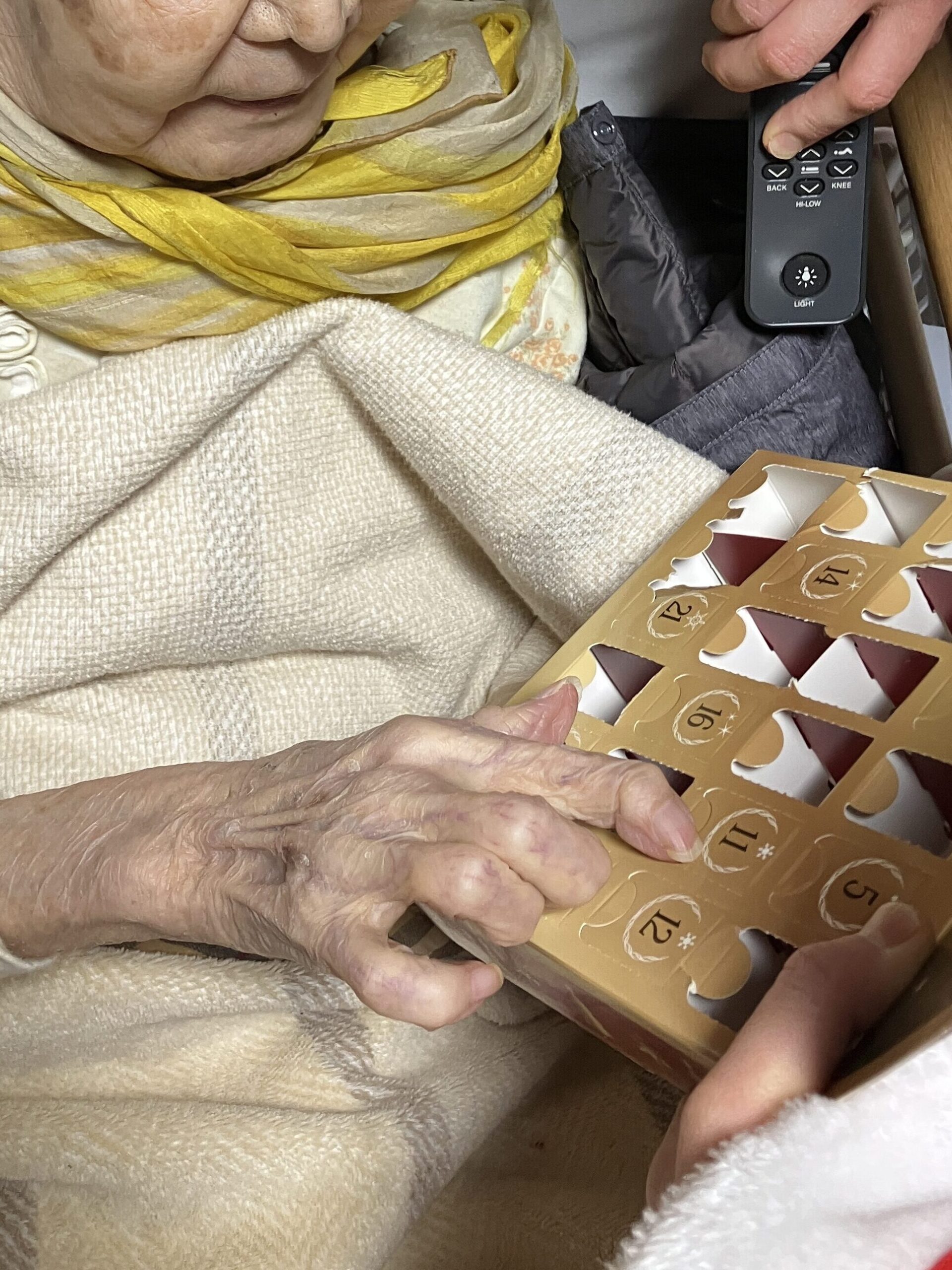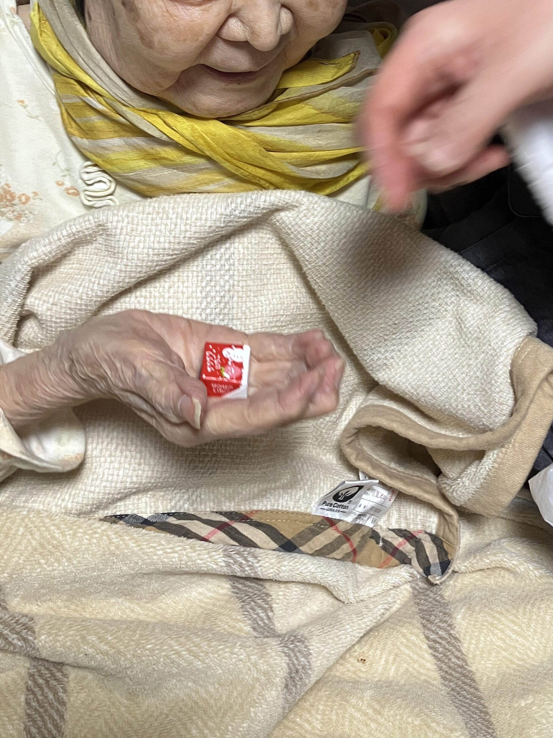 ロビーを抜け、長門サンタと真由美トナカイはお部屋で過ごされている方の所へと足を運びます🎁