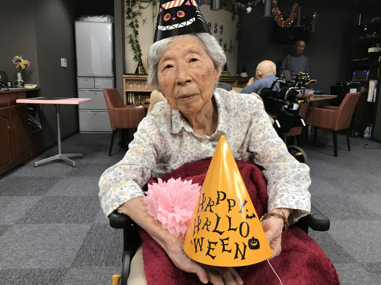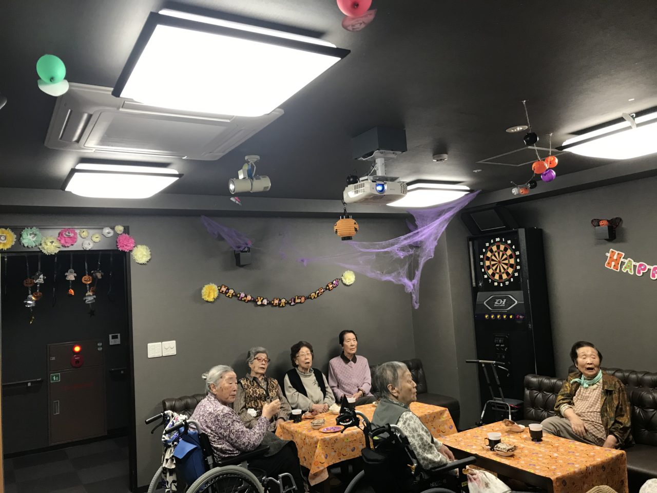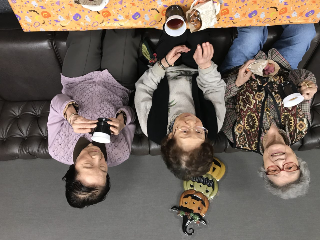 2019.11.01 ティーパーティー?ハロウィン さらさ横手別館スパ 秋も深まり、紅葉が綺麗ですね? こんにちは?さらさ横手別館スパの柿崎です。 10月31日はハロインのお祭りで、みんなで、お菓子の?パーティーをしました。? 紅茶とお芋ドーナッツ?食べてます? お祭りは楽しいなぁ? ちょっと、可愛いでしょ? お菓子のオバケで明るいハロウィンでした!