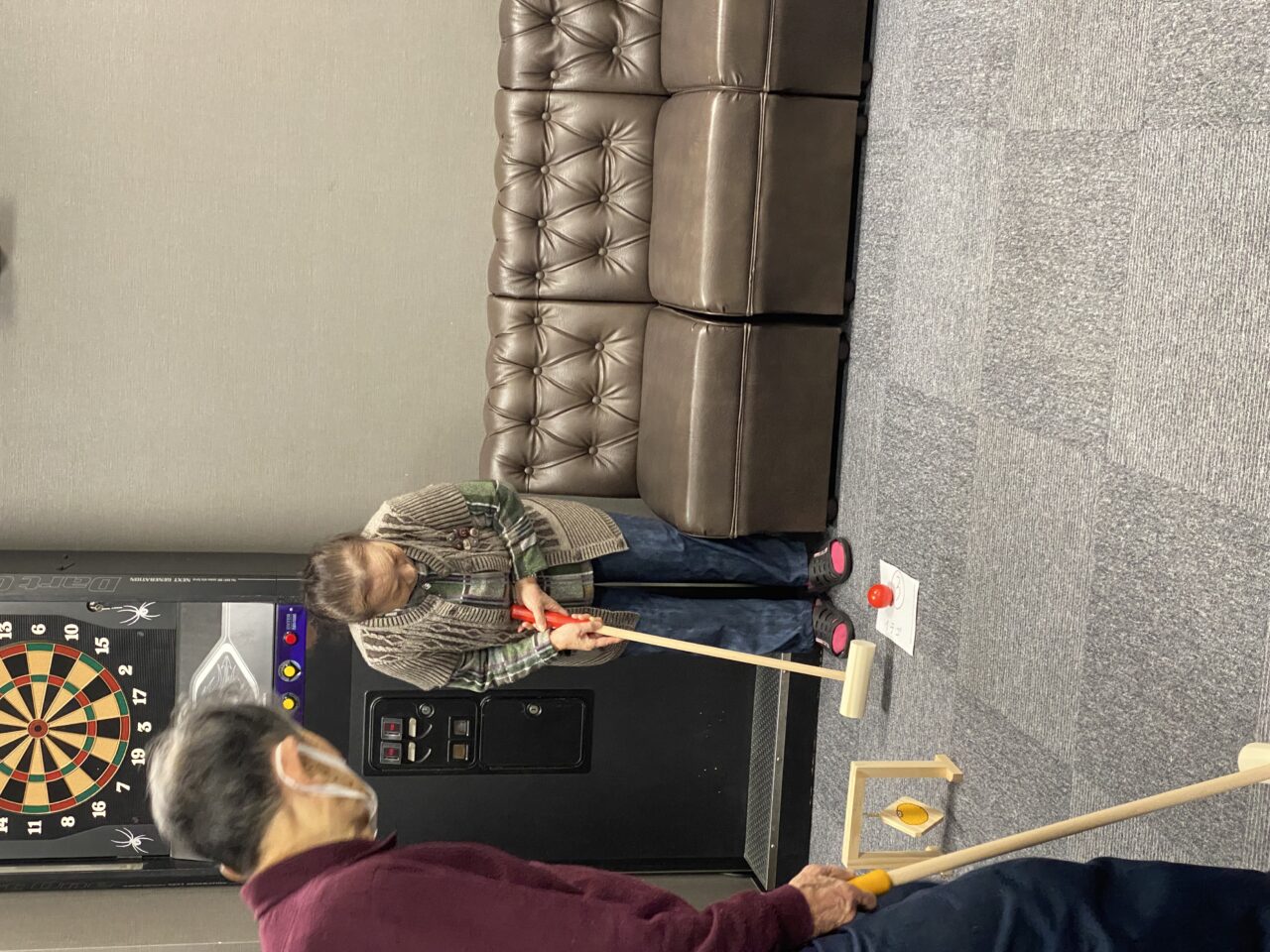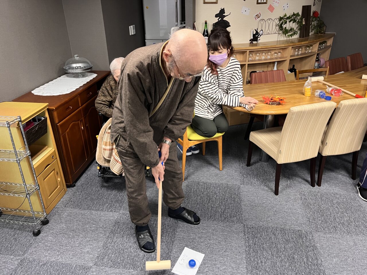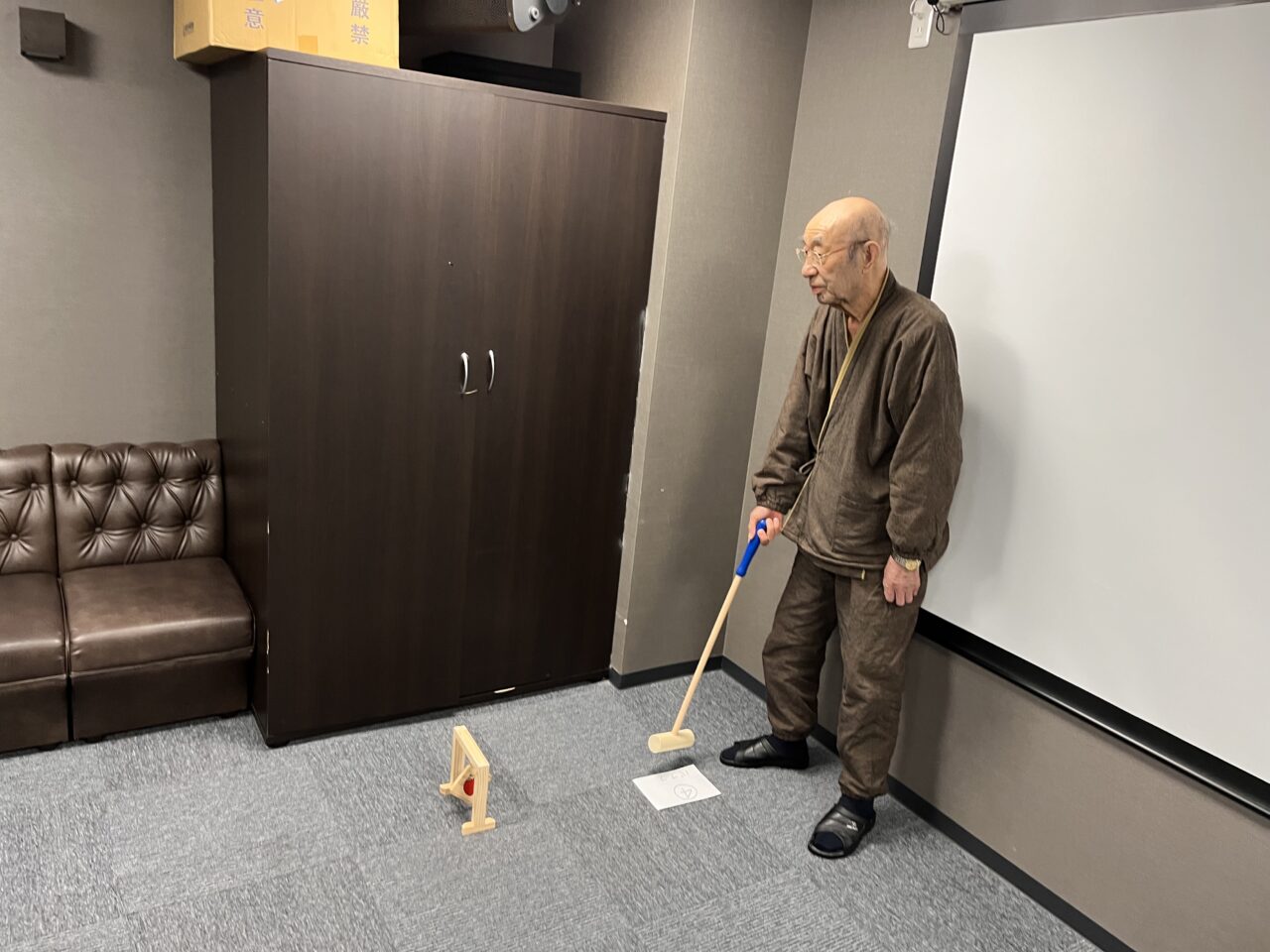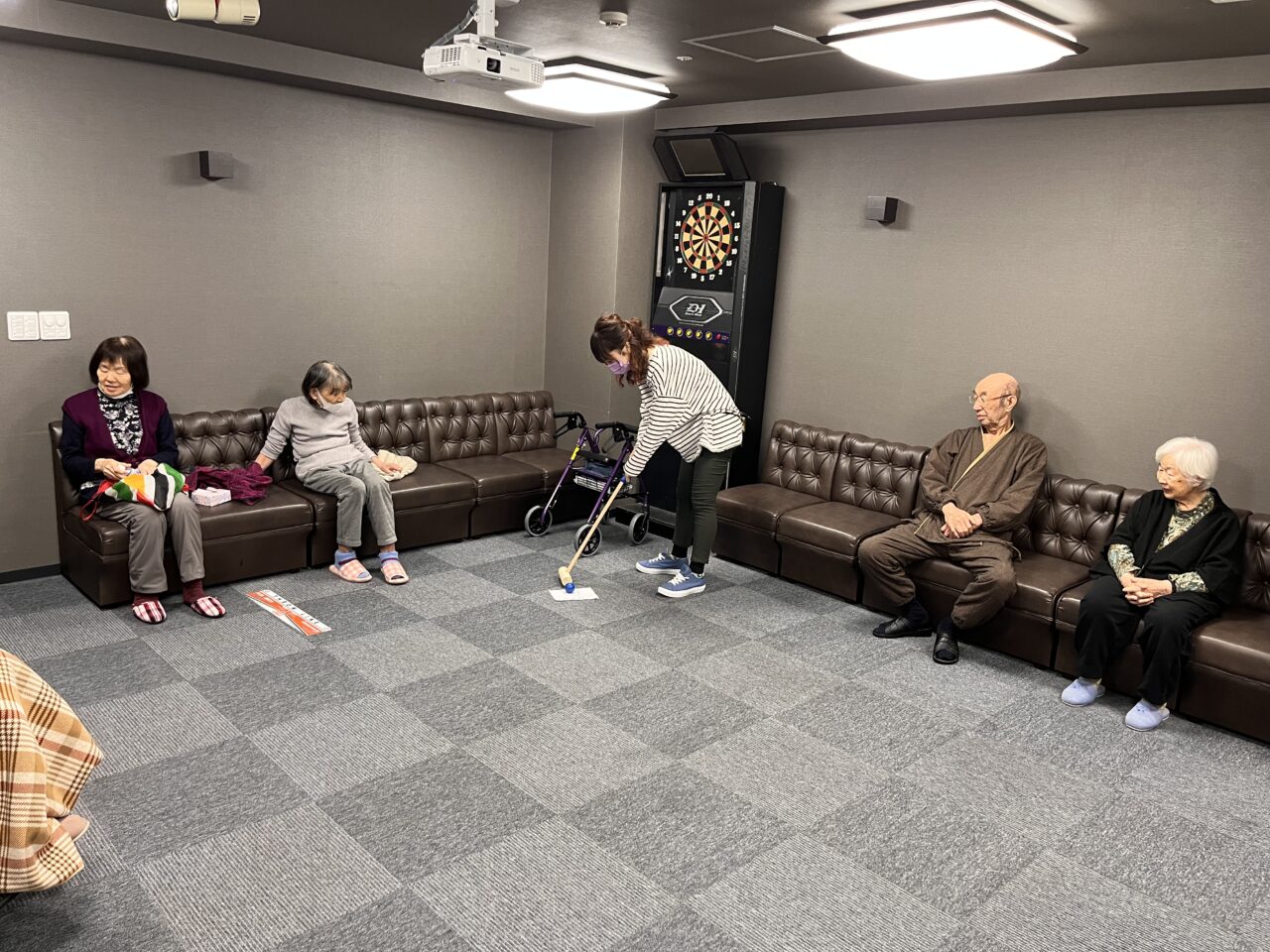 朝晩冷え込み、寒い日が続く?そんな日に、寒さを吹き飛ばすべく別館では後日行われるグランドゴルフ大会の練習をする事になりました?