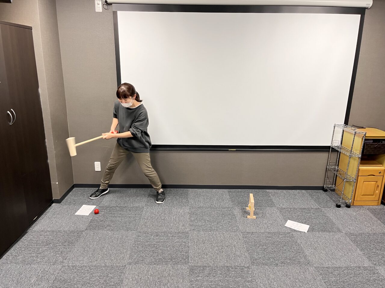 道具に慣れて頂く為に、全5ホールのコースを作り皆さんと周ります✨