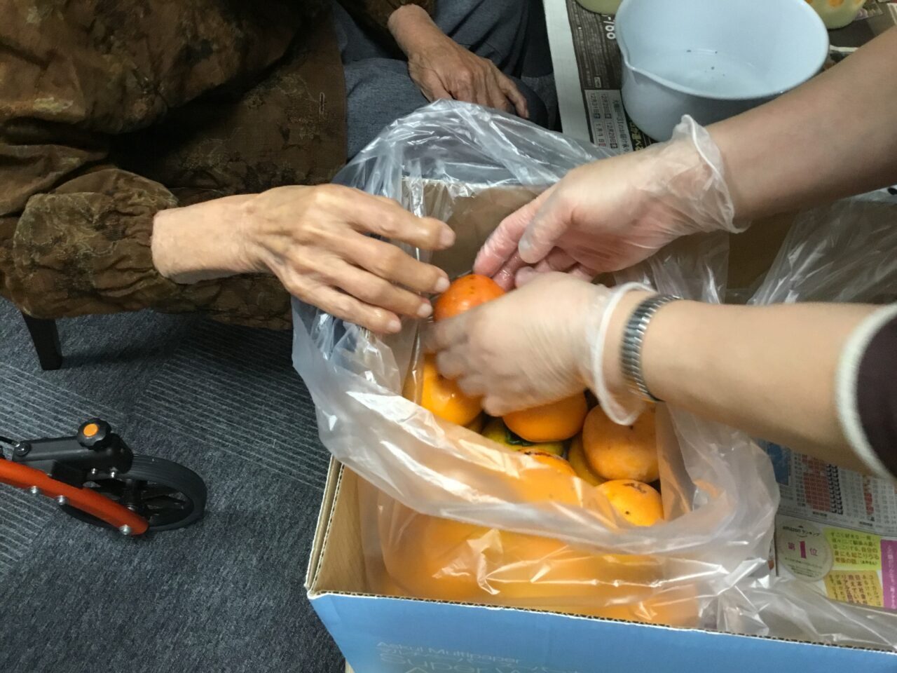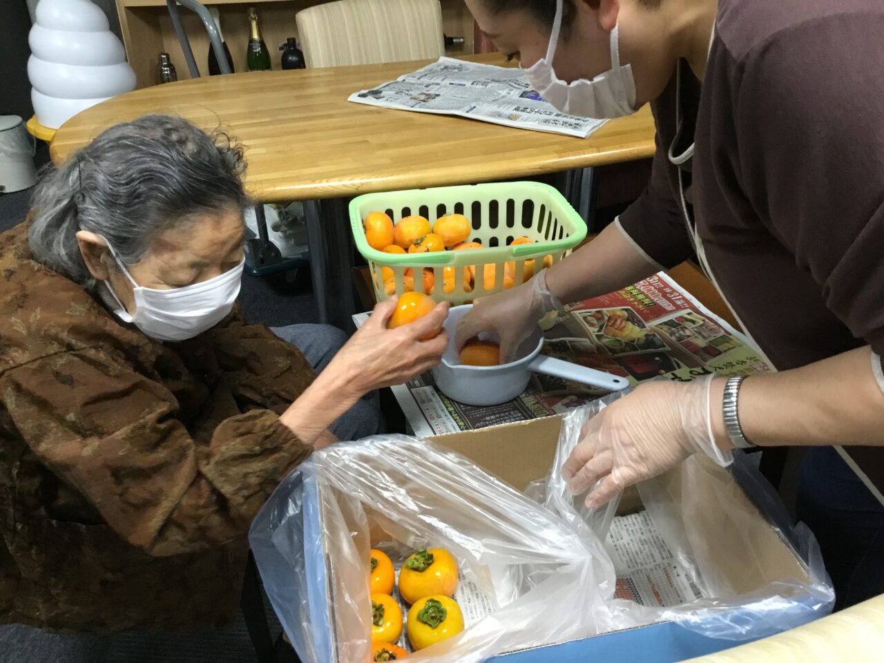 渋柿が甘いなんて…?変な話ですがわかる方は、わかりますよねー? 先日、別館に一富士の小田島さんから沢山の柿を頂きました。30日に小田島さんから指導を受け利用者さんと一緒に【さし柿】行いました(๑˃̵ᴗ˂̵)